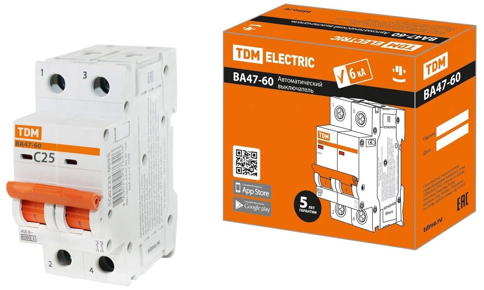 Авт. выкл. ВА47-60 2Р 25А 6кА х-ка С TDM информация: