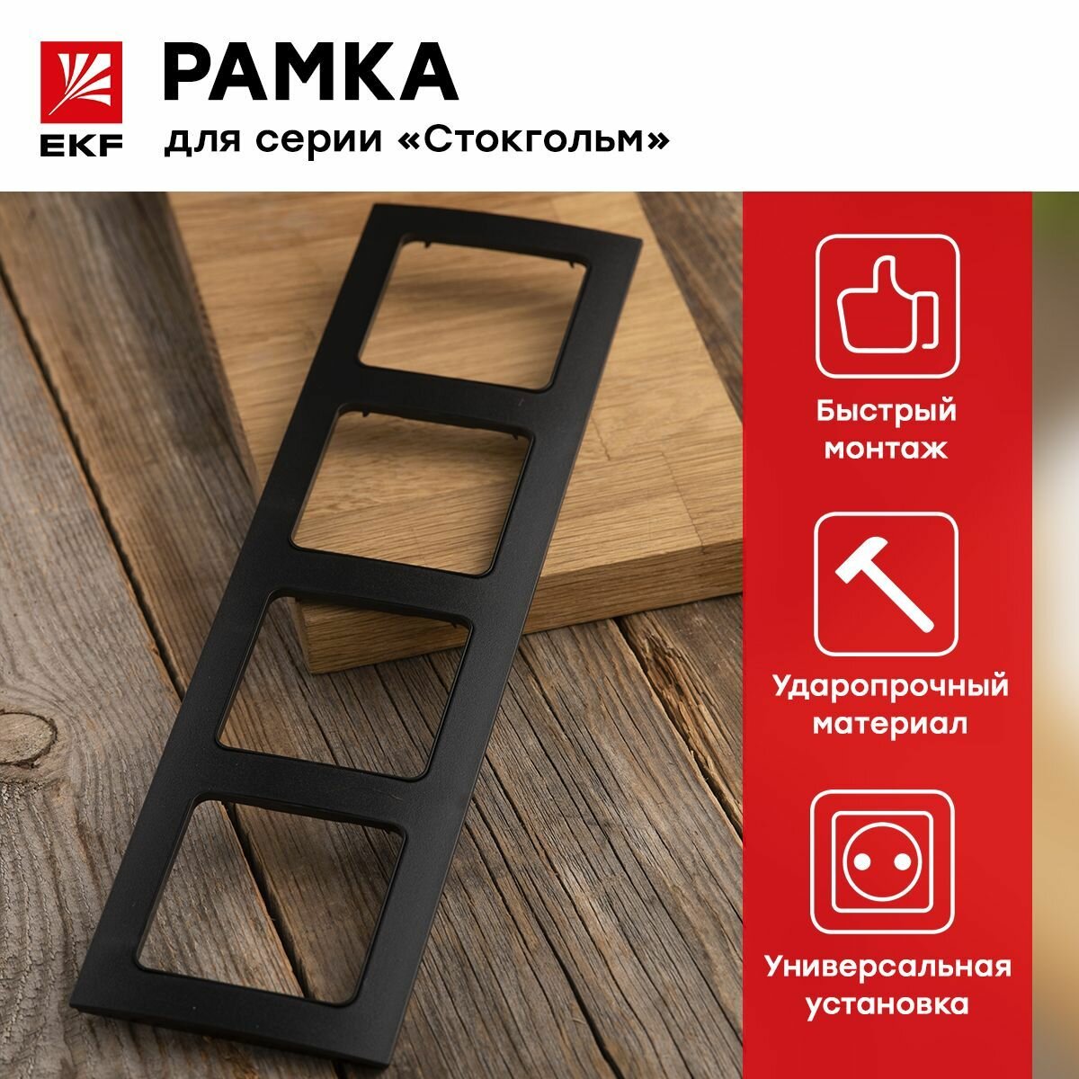 Рамка электроустановочная 4-местная Стокгольм, черная, EKF PROxima информация: