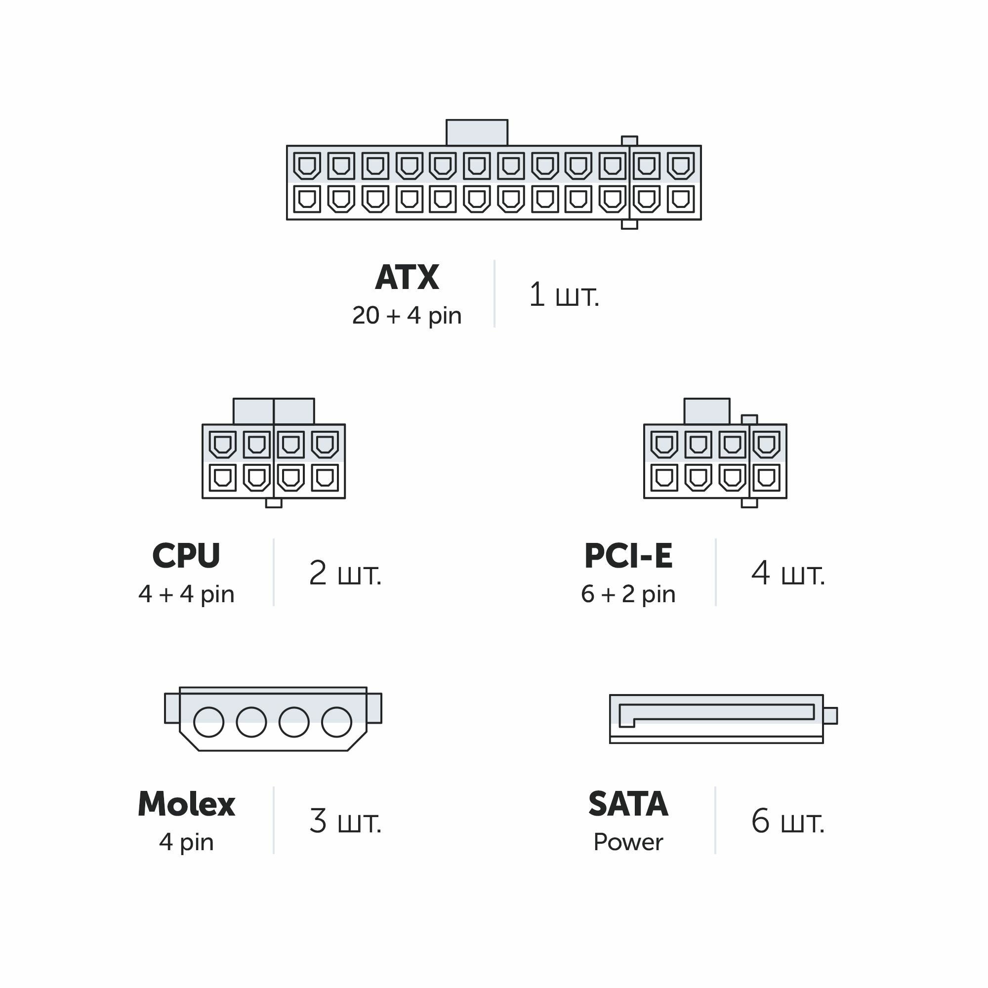Количество разъемов 4-pin Molex | 4 |