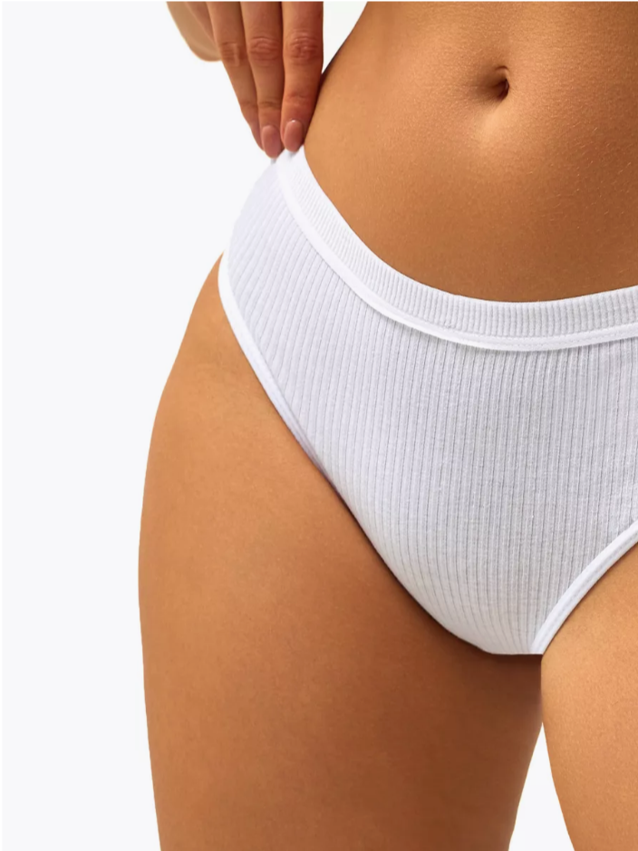 Комплект хлопковых трусов слипы 5 шт в рубчик 42 размер белые 699 ₽