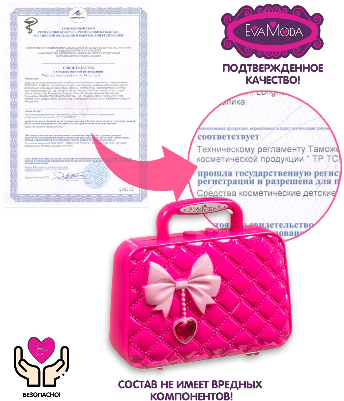 10 цен на Набор декоративной косметики для девочек сумочка С бантиком розовый, 7 оттенков теней, 2 помады, 12 блесков для губ, аксессуары Eva Moda Bondibon подарок девочке
