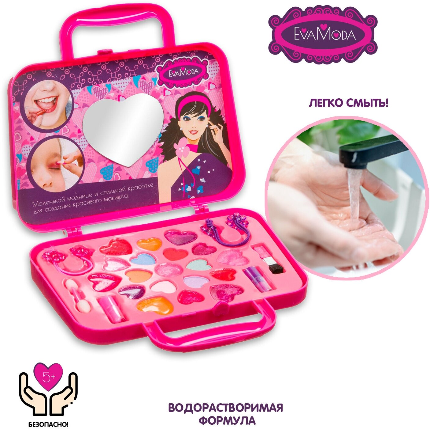 Отзывы на Набор декоративной косметики для девочек сумочка С бантиком розовый, 7 оттенков теней, 2 помады, 12 блесков для губ, аксессуары Eva Moda Bondibon подарок девочке