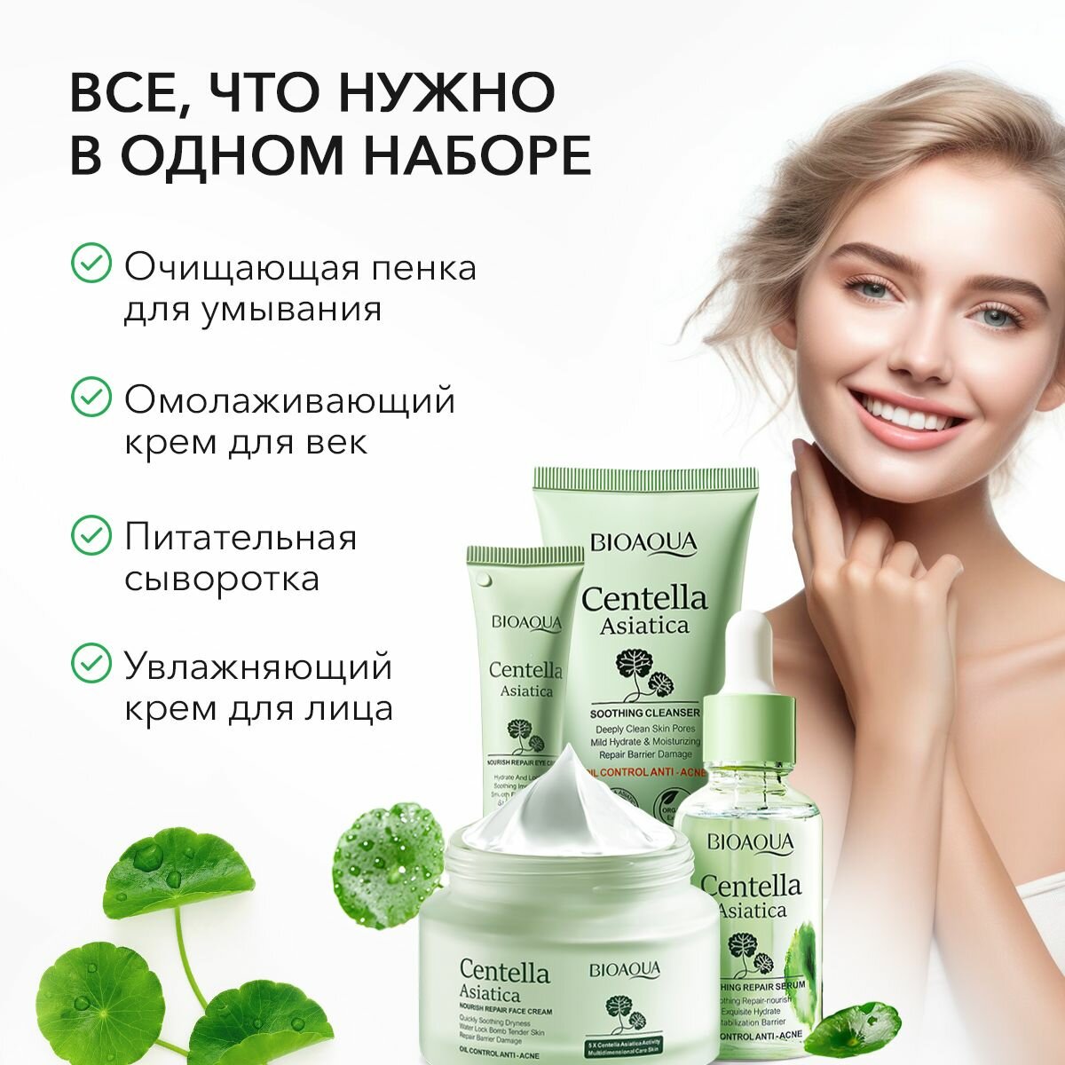| В наборе | Очищающая пенка, крем для век, сыворотка, крем для лица |