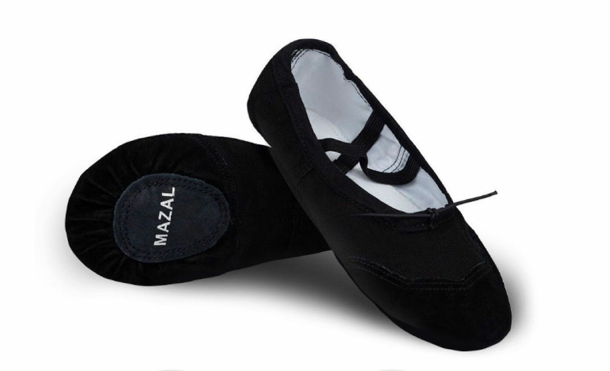 Балетки для танцев, гимнастики, хореографии и балета с замшевым усиленным мысом унисекс Mazal, цвет черный, размер 30 800 ₽
