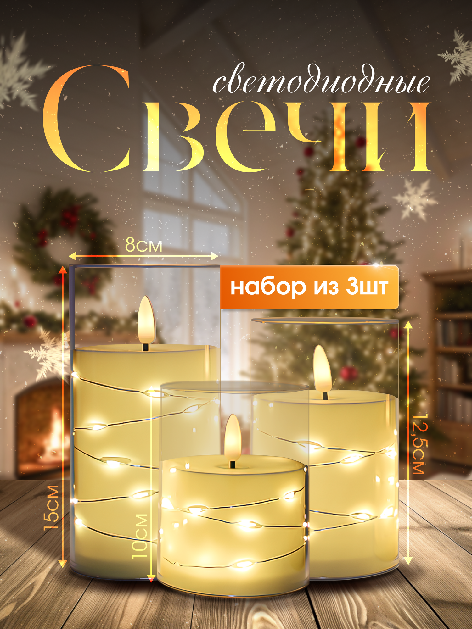 Свечи на батарейках мерцающие светодиодные 3 шт информация: