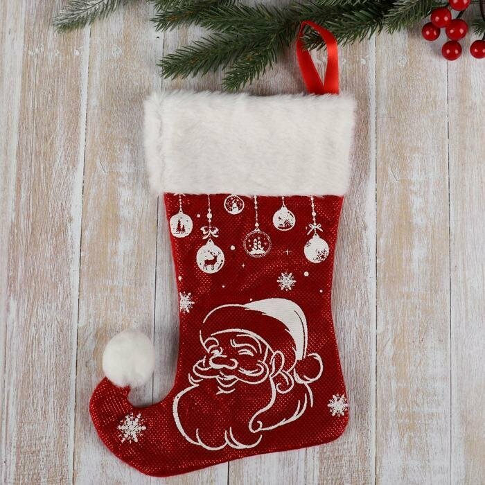 10 цен на Носок для подарков Зимнее волшебство "Волшебство", Дед Мороз, 18х25 см, бело-красный