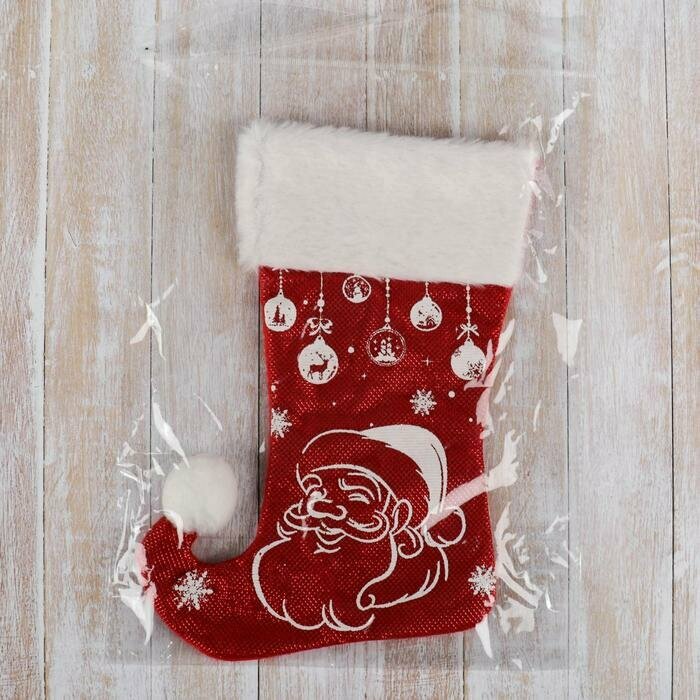Носок для подарков Зимнее волшебство "Волшебство", Дед Мороз, 18х25 см, бело-красный информация: