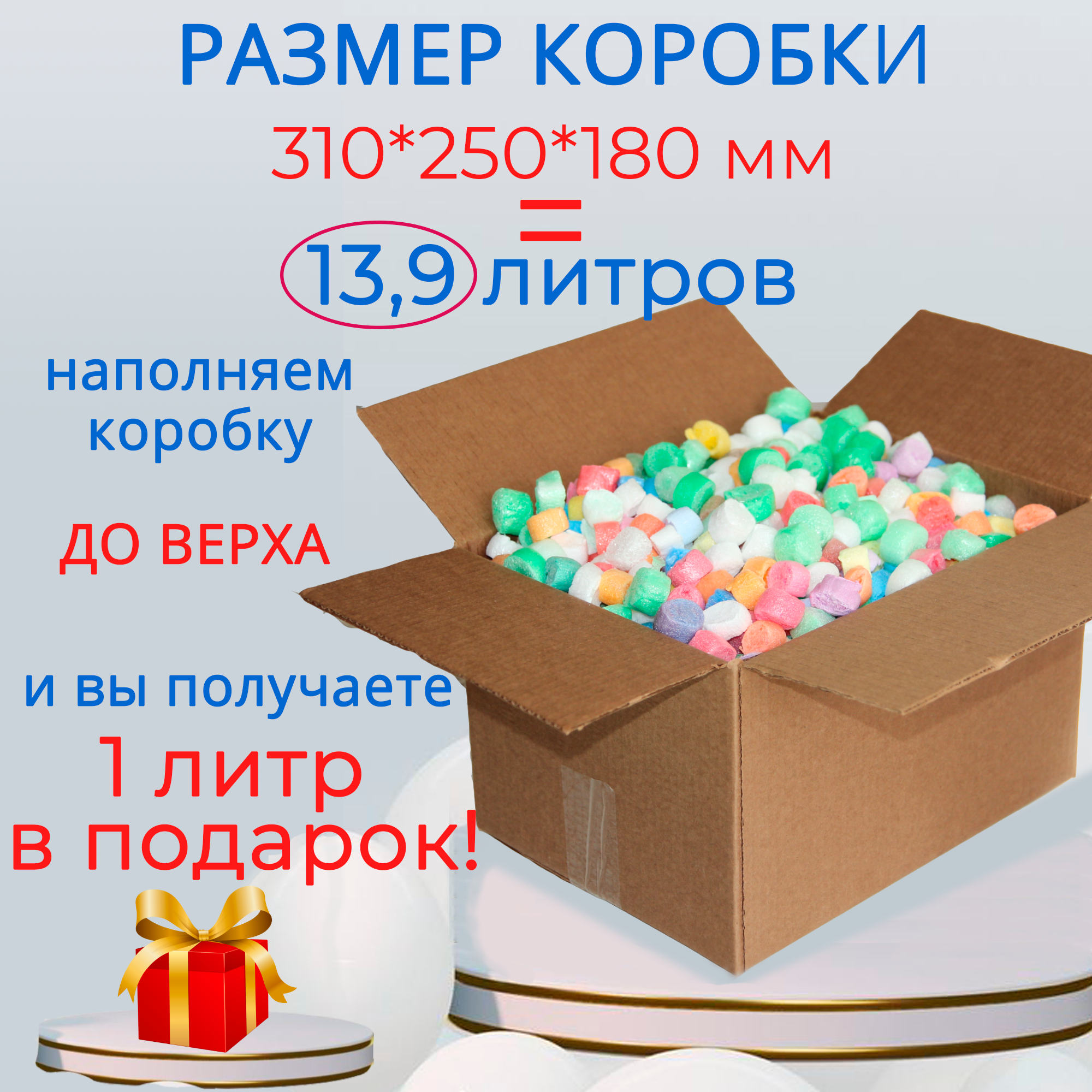 | Комплектация | Пенопластовые шарики в коробке объём 13 литров |