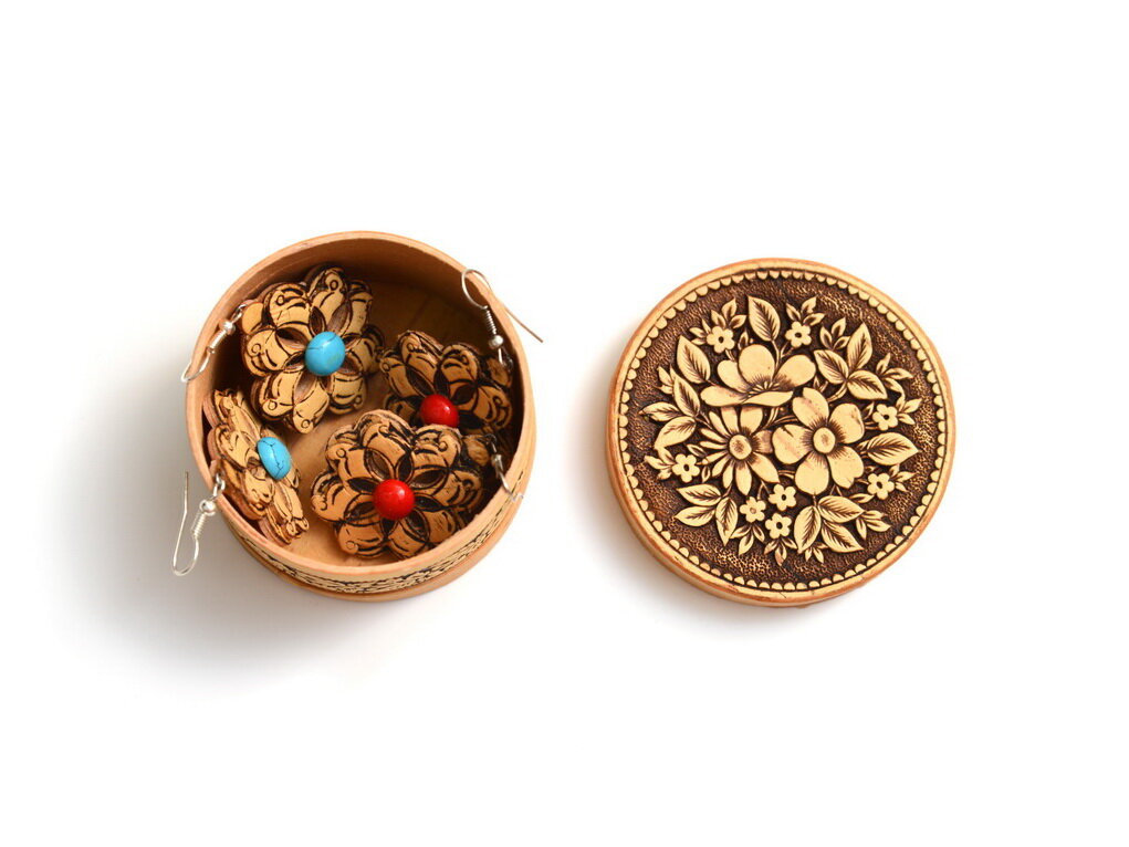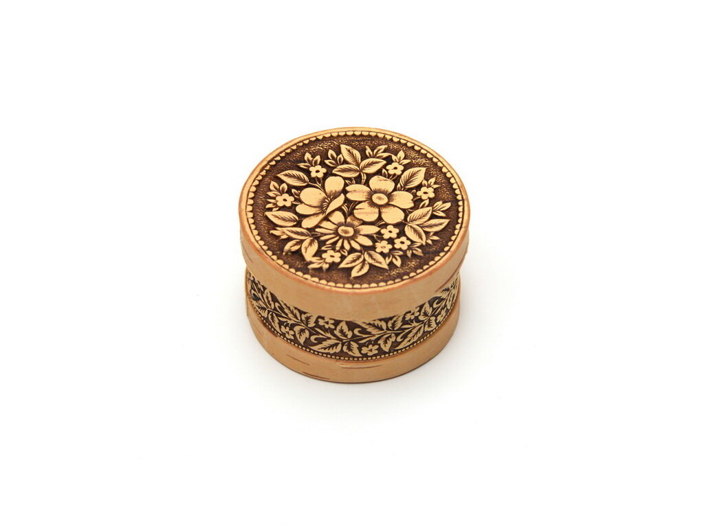 Шкатулка из бересты маленькая "Цветочки" информация: