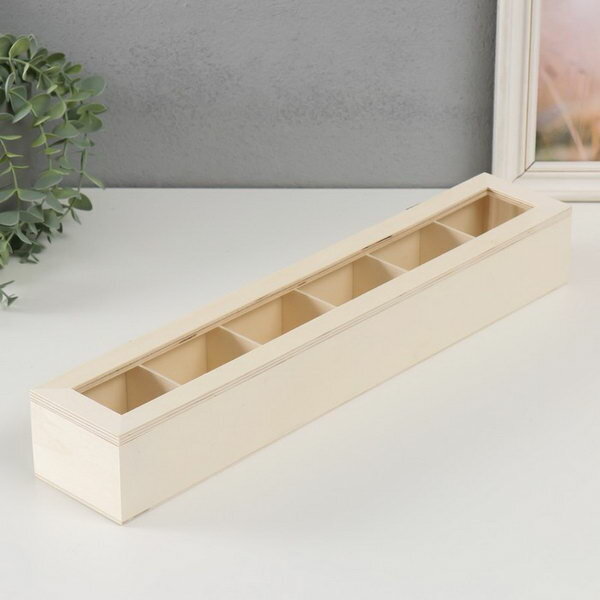 Шкатулка для росписи дерево со стеклом и делениями "Прямоугольная", для творчества, декора, без замка, 45x8.5x6.5 см 990 ₽