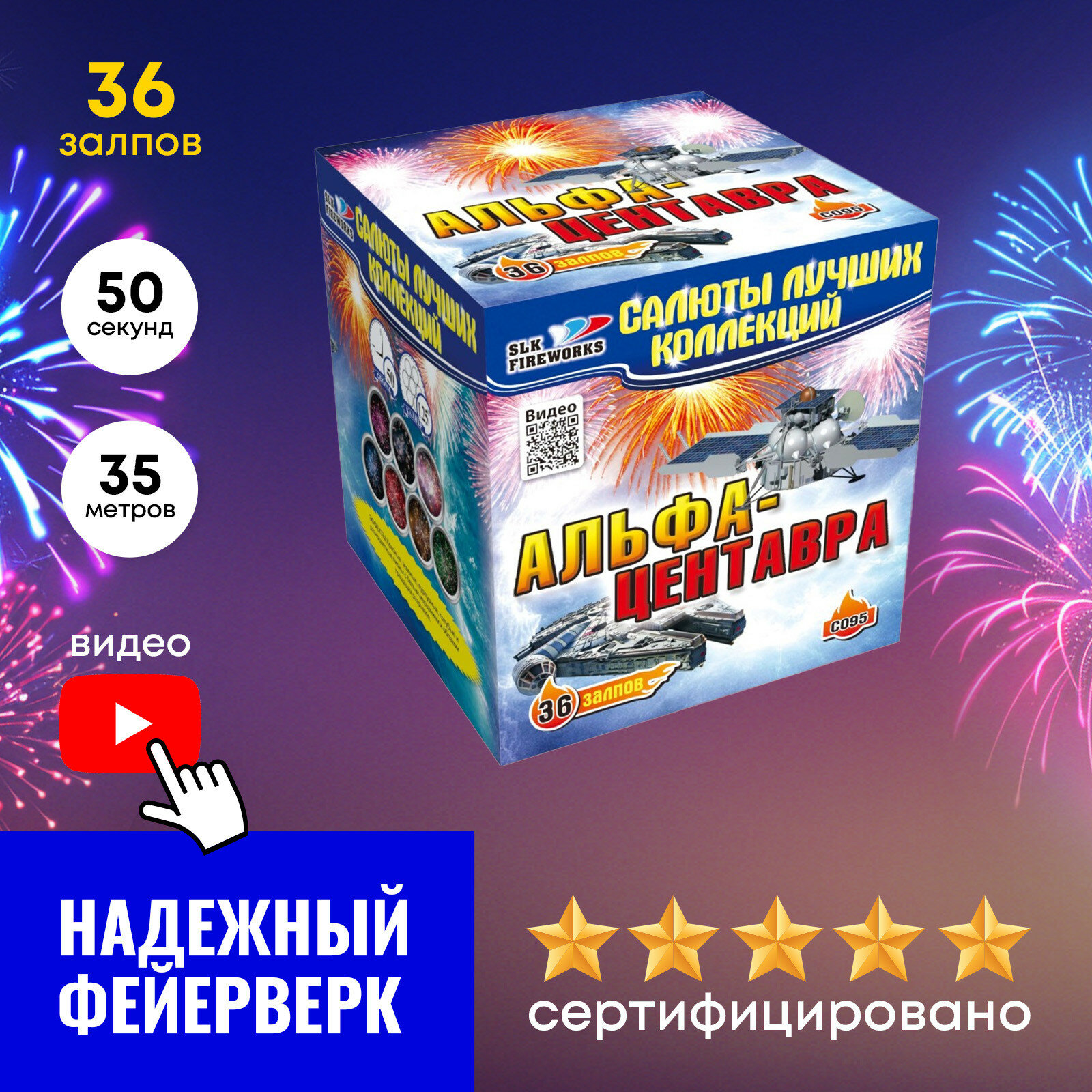 Салют фейерверк "Альфа-Центавра" slk fireworks C 095, 36 залпов, 1.25 информация:
