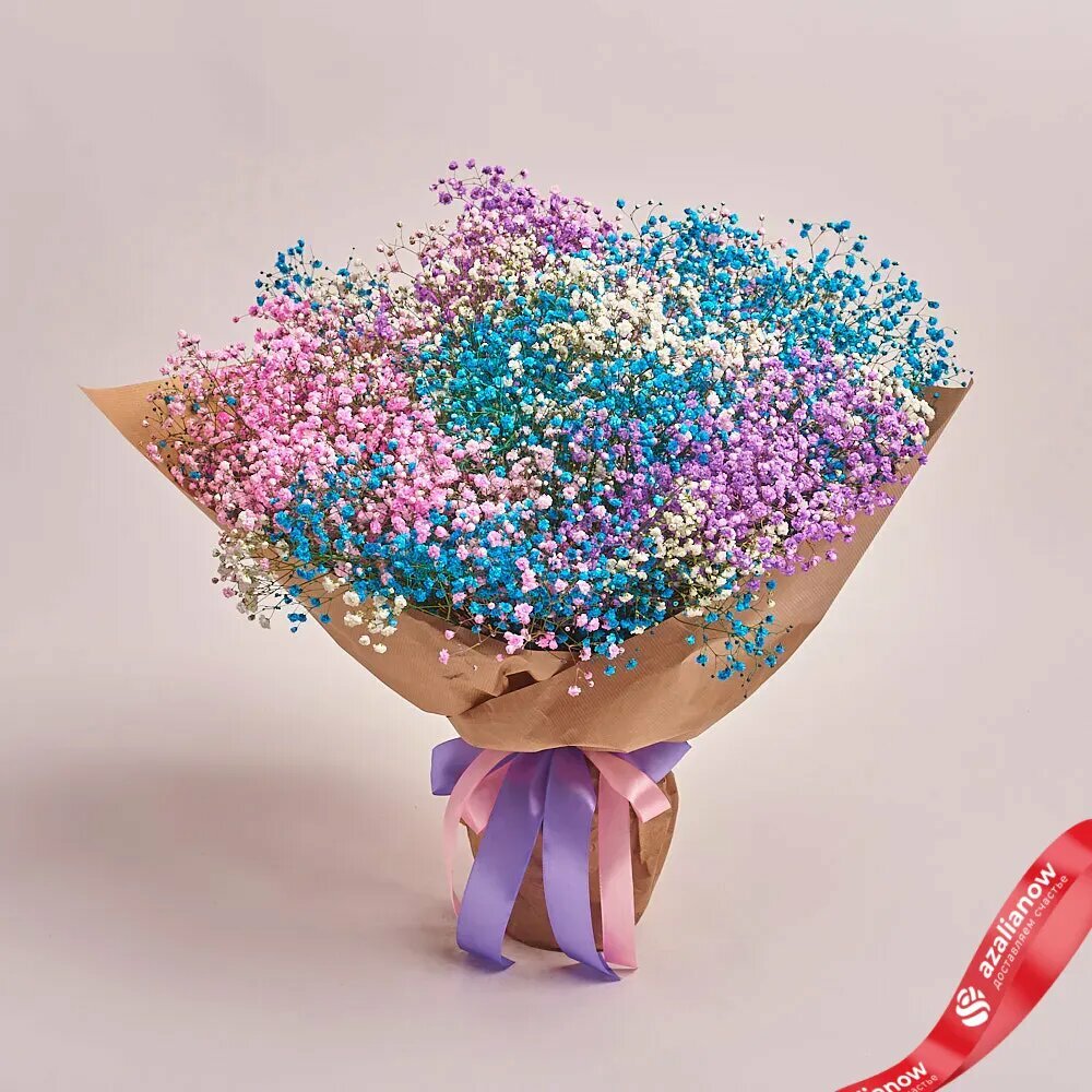 Отзывы на Воздушный как облако букет из 15 радужных гипсофил в крафтовой бумаге