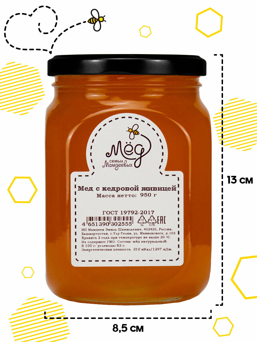 Мёд с кедровой живицей, 950 г Башкирский натуральный мед, без сахара информация: