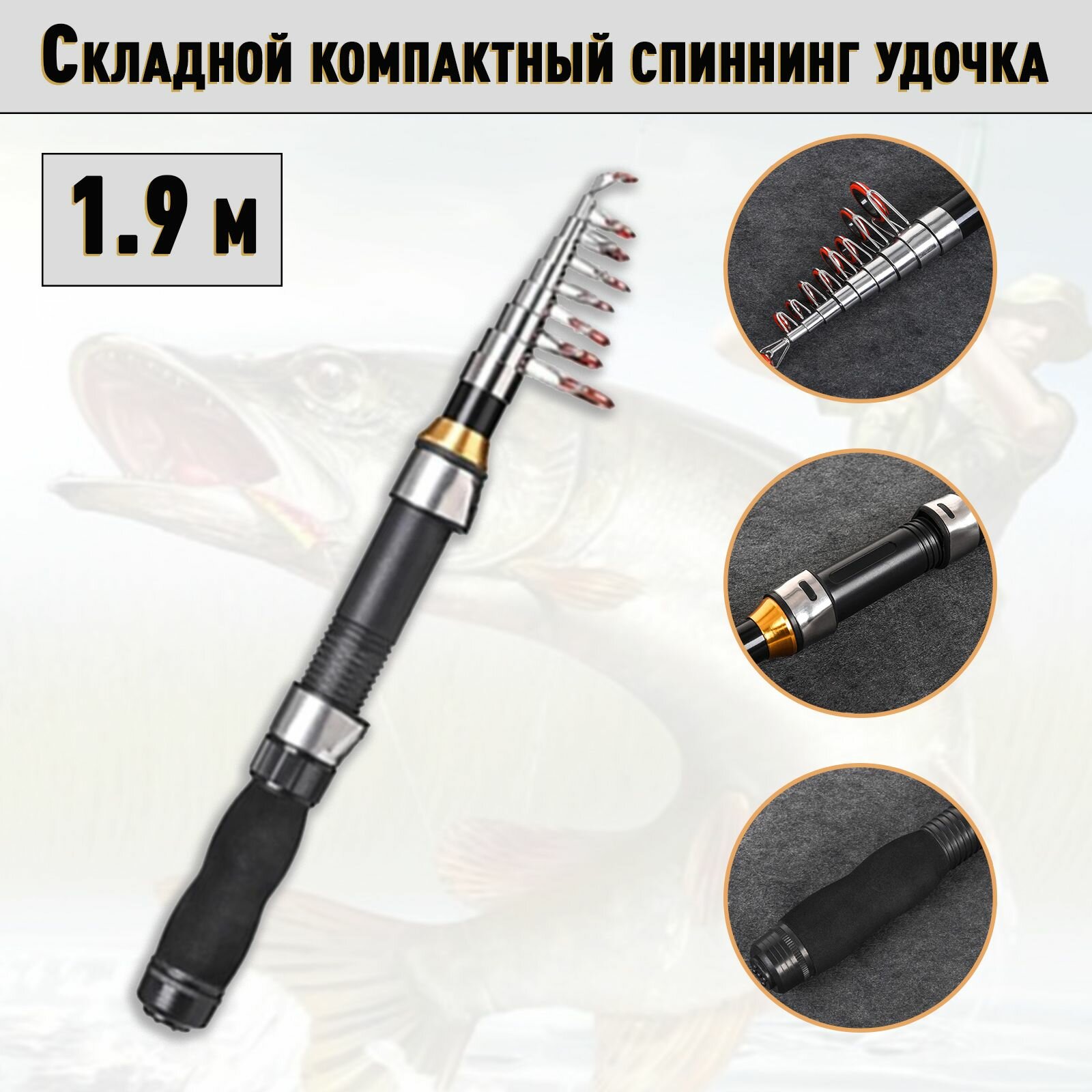 10 цен на Складной компактный спиннинг удочка/ Ультракороткое портативное удилище 1.9 метра 190 см