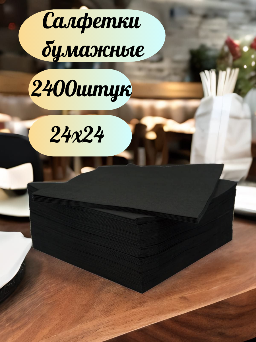 Салфетки бумажные чёрные 2400 шт,(6х400шт) "БигПак" 24х24 см сервировочные информация: