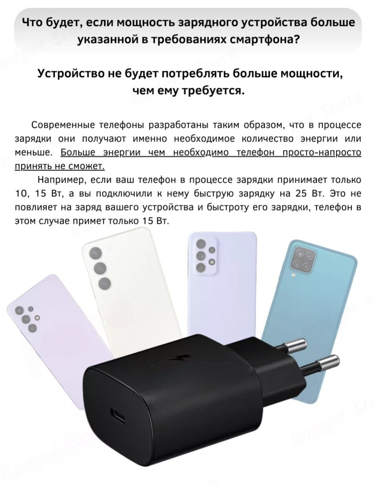 Адаптер 25W USB-C + Кабель Type-C (3A) совместим с Samsung , быстрая зарядка информация: