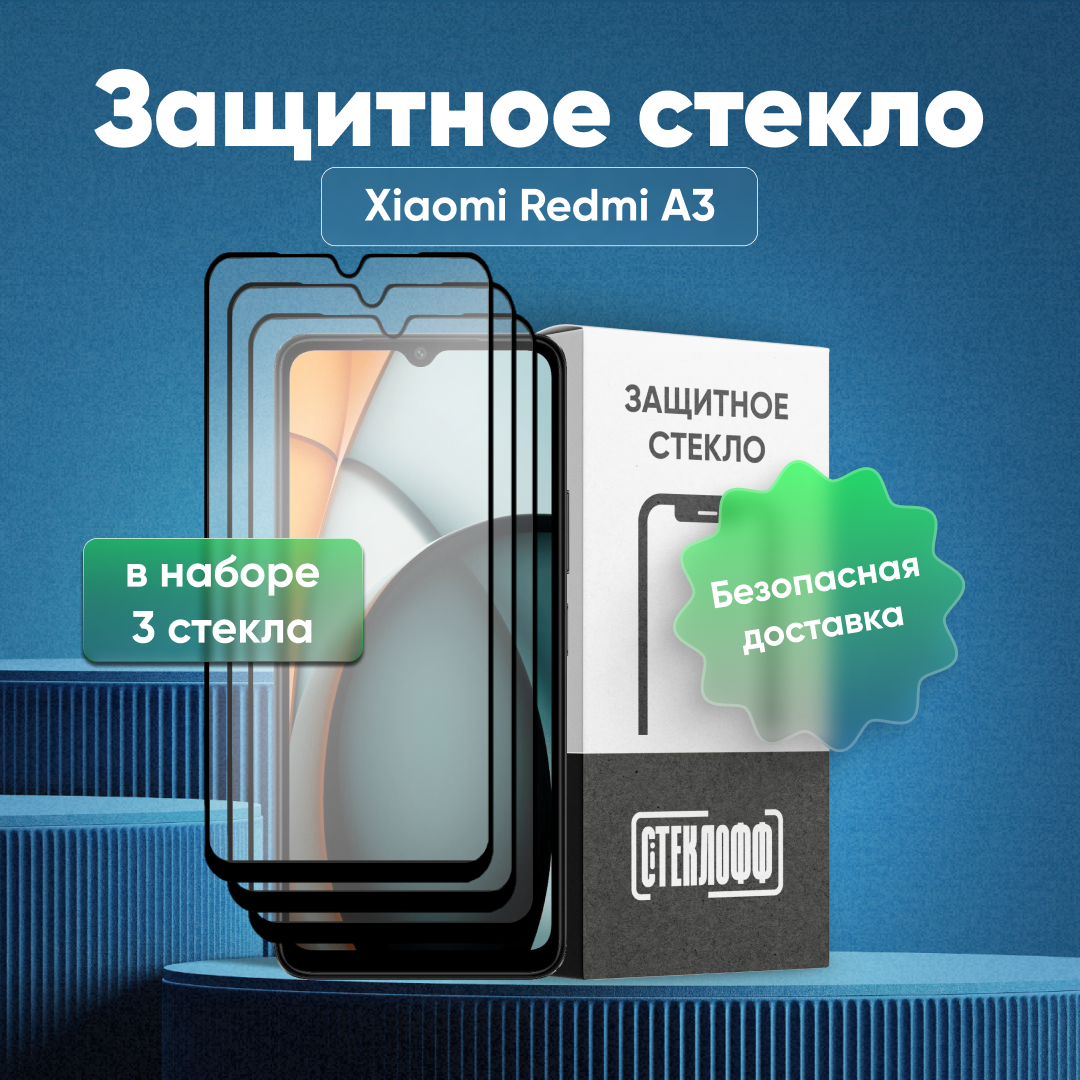 Набор защитных стекол для Xiaomi Redmi A3 c полным покрытием, серия Стеклофф Base, 3 шт информация: