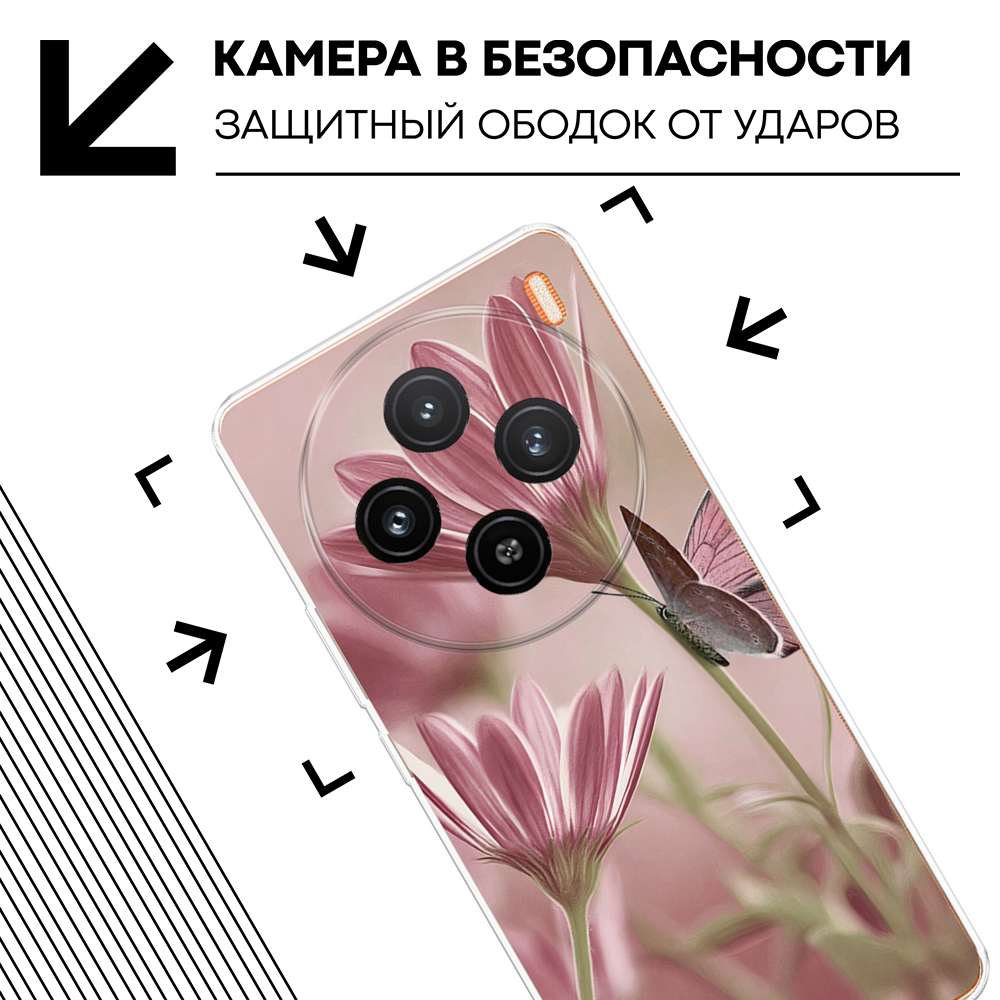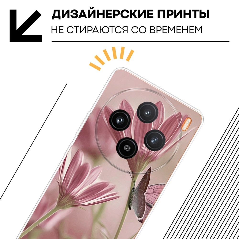 Отзывы на Силиконовый чехол на Vivo X100 / Виво X100 с принтом Цветы и бабочка