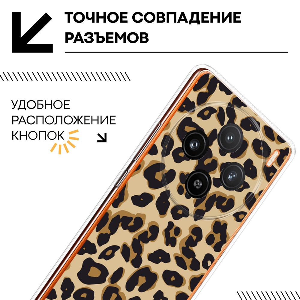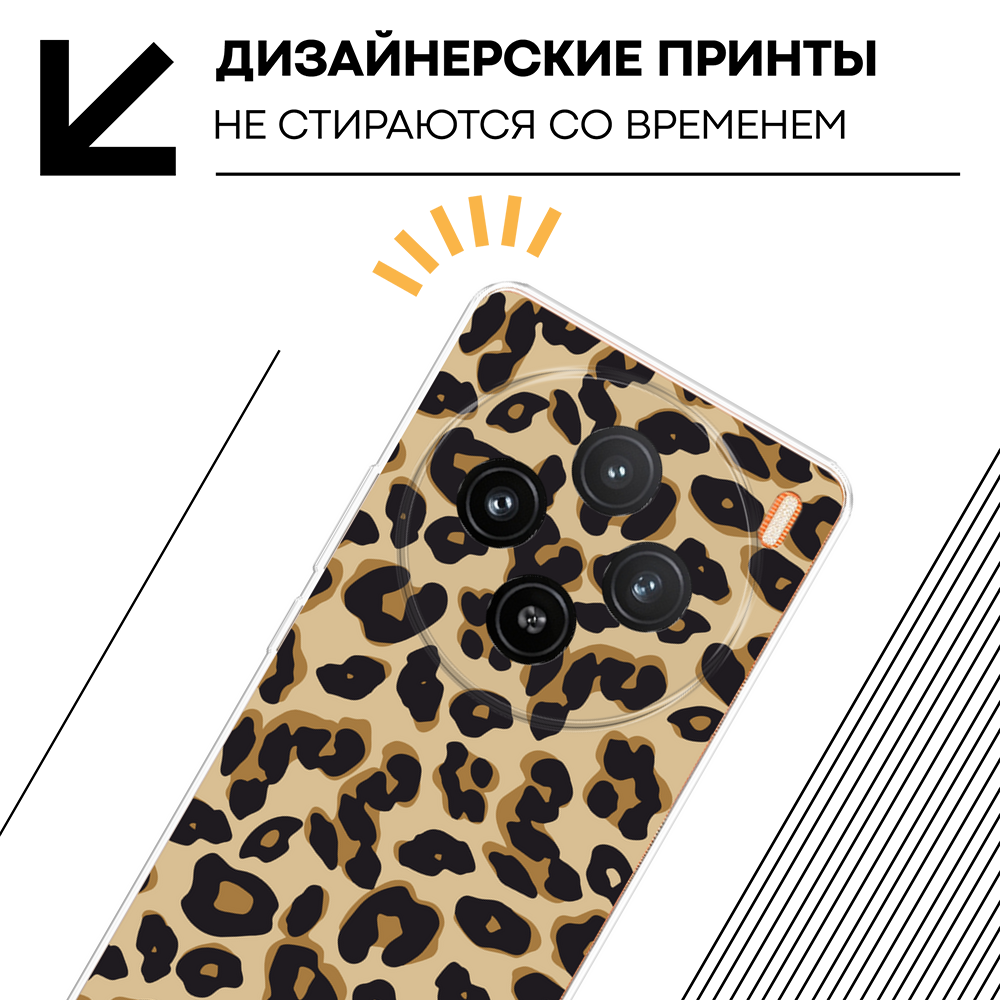 10 цен на Силиконовый чехол на Vivo X100 / Виво X100 с принтом Леопардовый узор