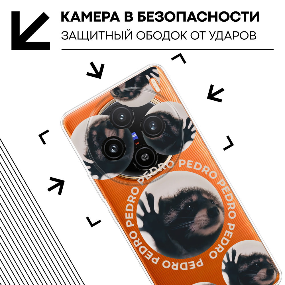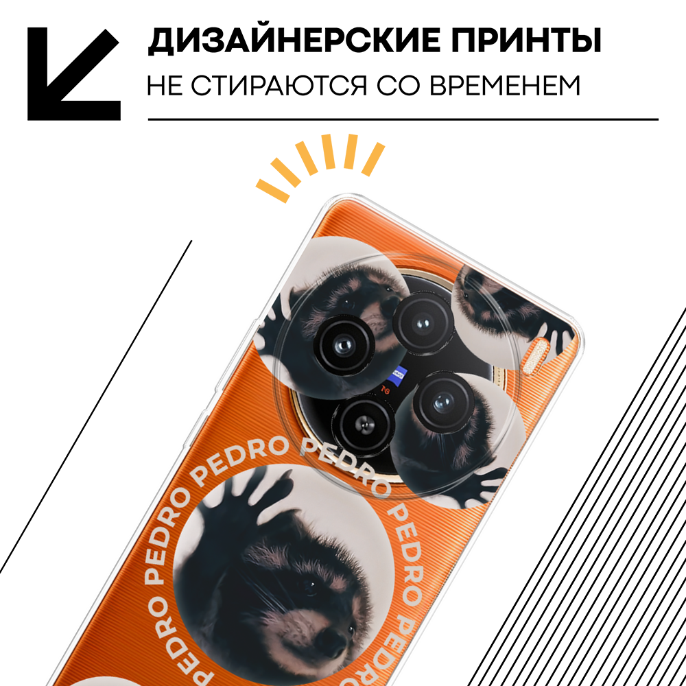 Чехол на Vivo X100 / Виво X100 с принтом Енот Педро, прозрачный информация: