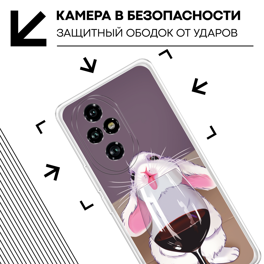 10 цен на Чехол на Honor 200 Pro / Хонор 200 Про с принтом Заяц с вином