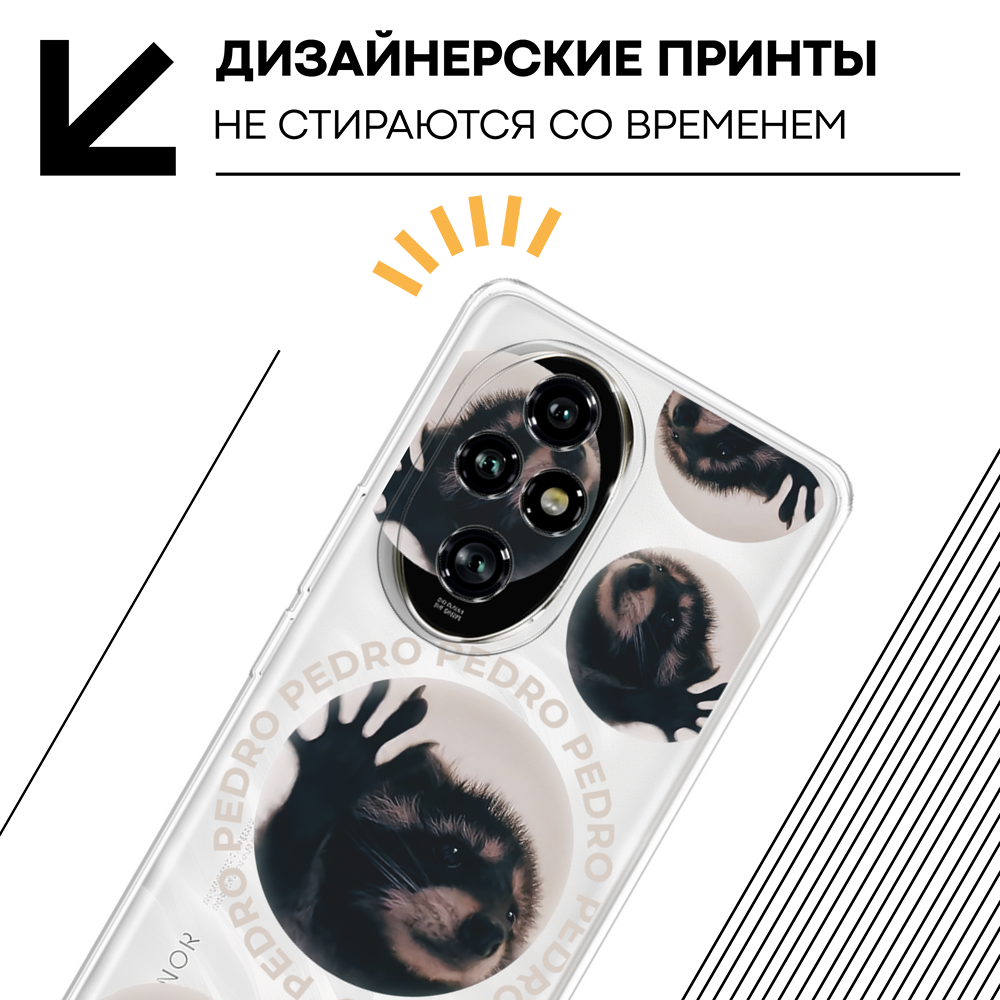Чехол на Honor 200 Pro / Хонор 200 Про с принтом Енот Педро, прозрачный информация:
