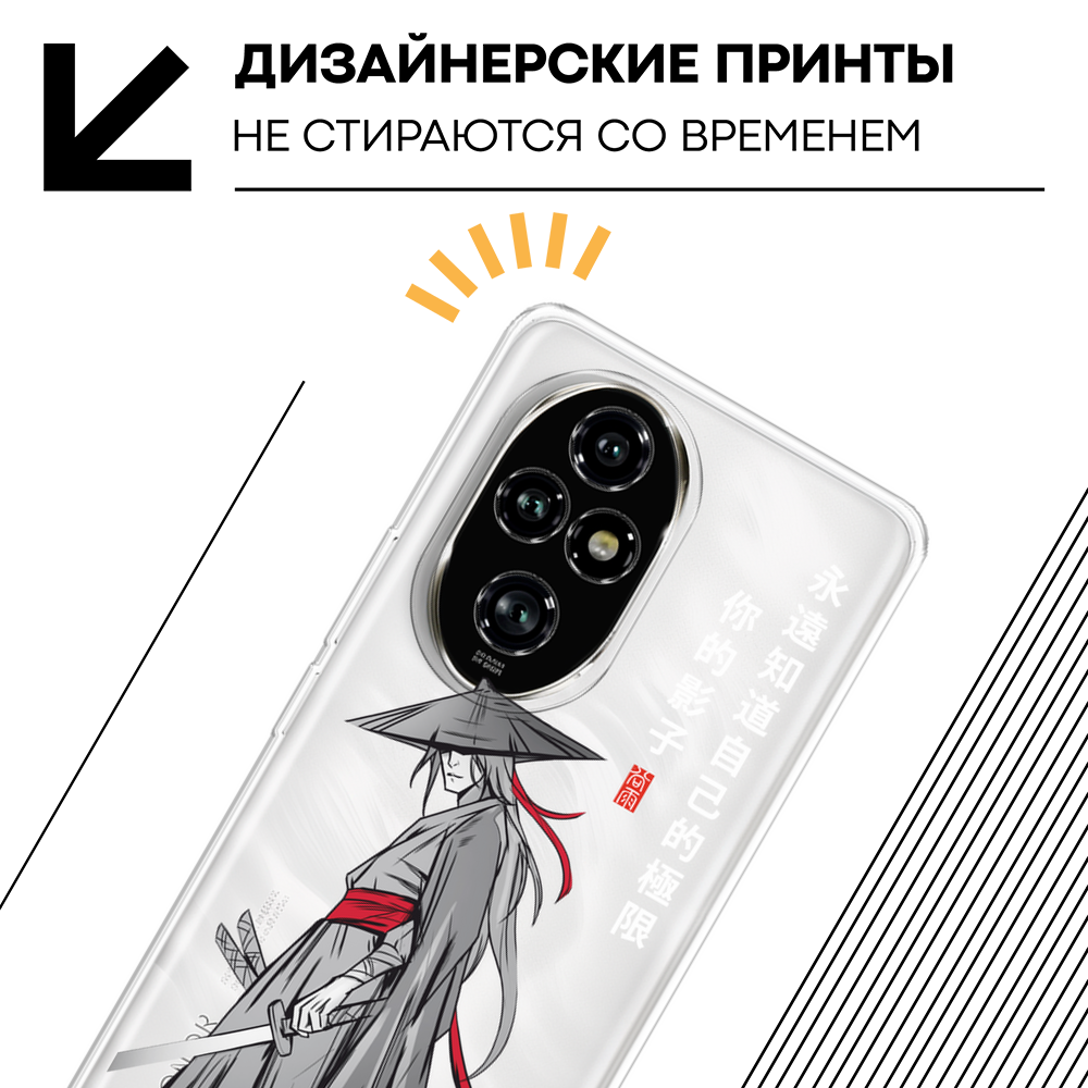 Отзывы на Чехол на Honor 200 Pro / Хонор 200 Про с принтом Самурай в стиле аниме, прозрачный