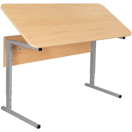 Стол-парта 2-местный, регулируемый угол, СУТ.55-01, 1200х500х520-640 мм, рост 2-4, серый каркас, ЛДСП клён