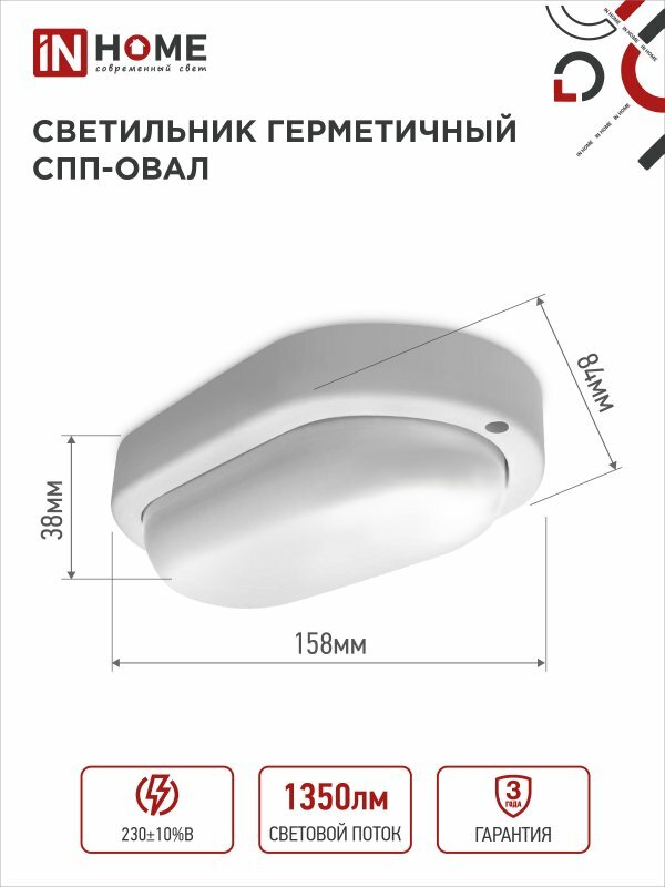 Светильник светодиодный герметичный СПП 1565-ОВАЛ 15Вт 6500К 1350Лм IP65 160х88мм IN HOME информация:
