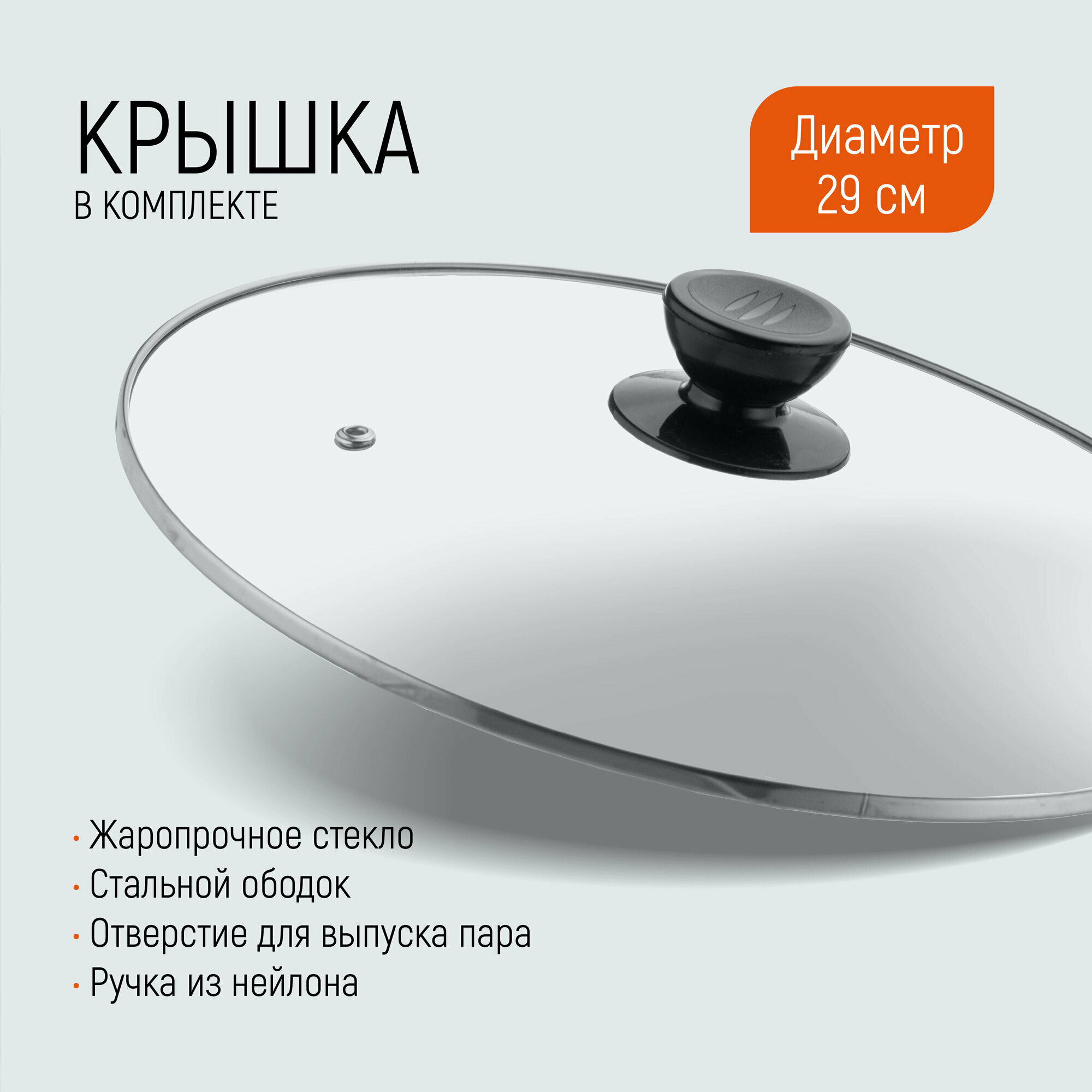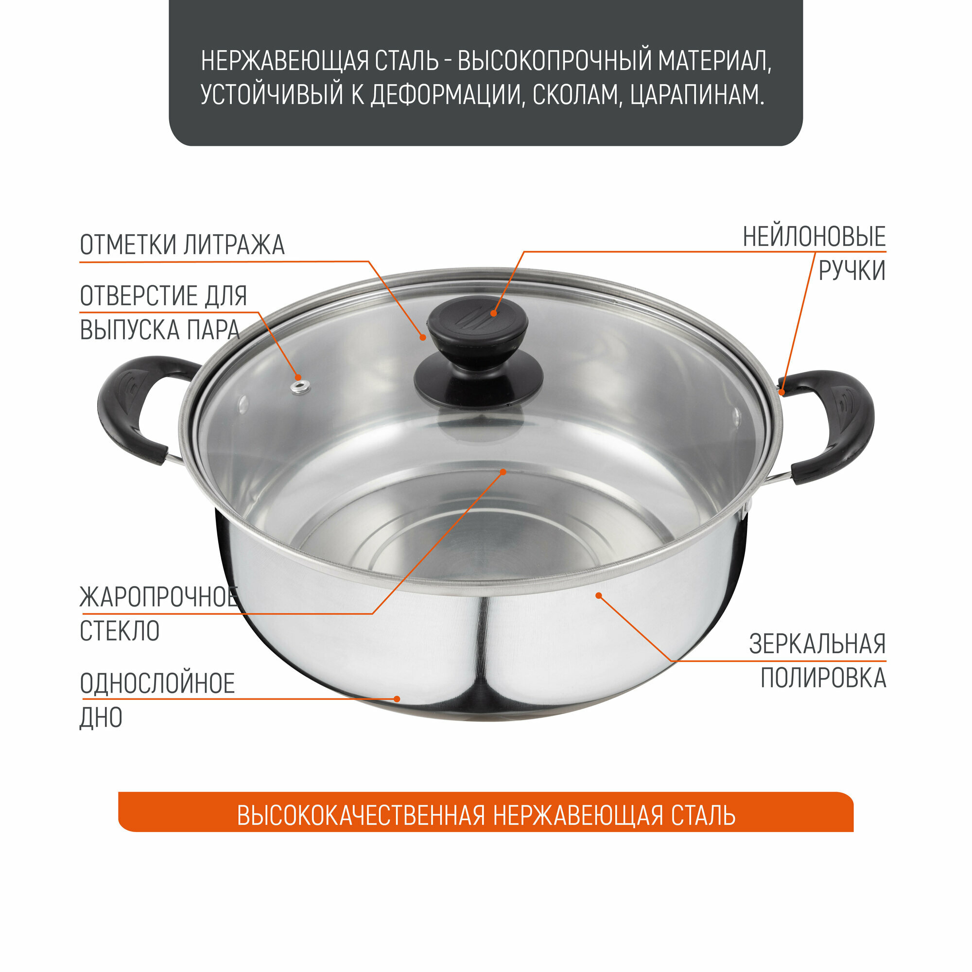 Кастрюля Promo, объем 5,5 л, из нержавеющей стали с крышкой из жаропрочного стекла информация: