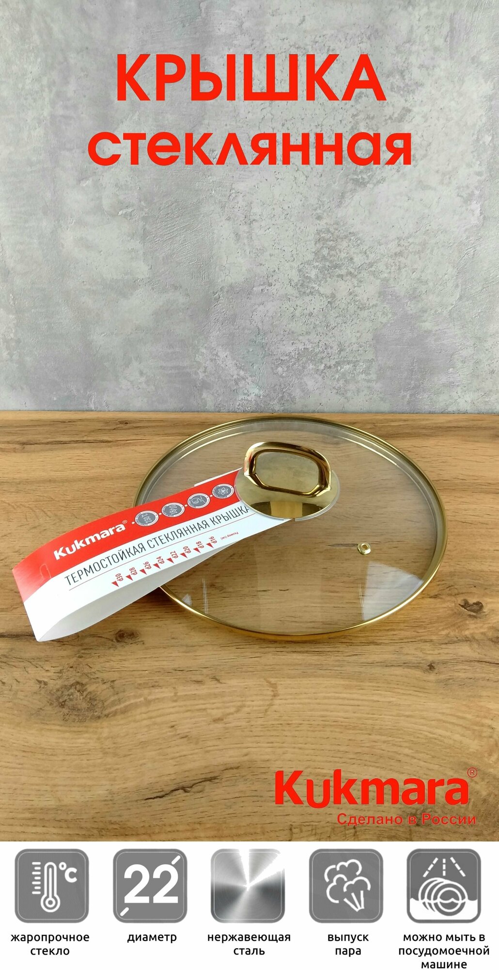 Крышка стеклянная 22 см KUKMARA с22т114, низкая, металл. обод, ручка soft-touch