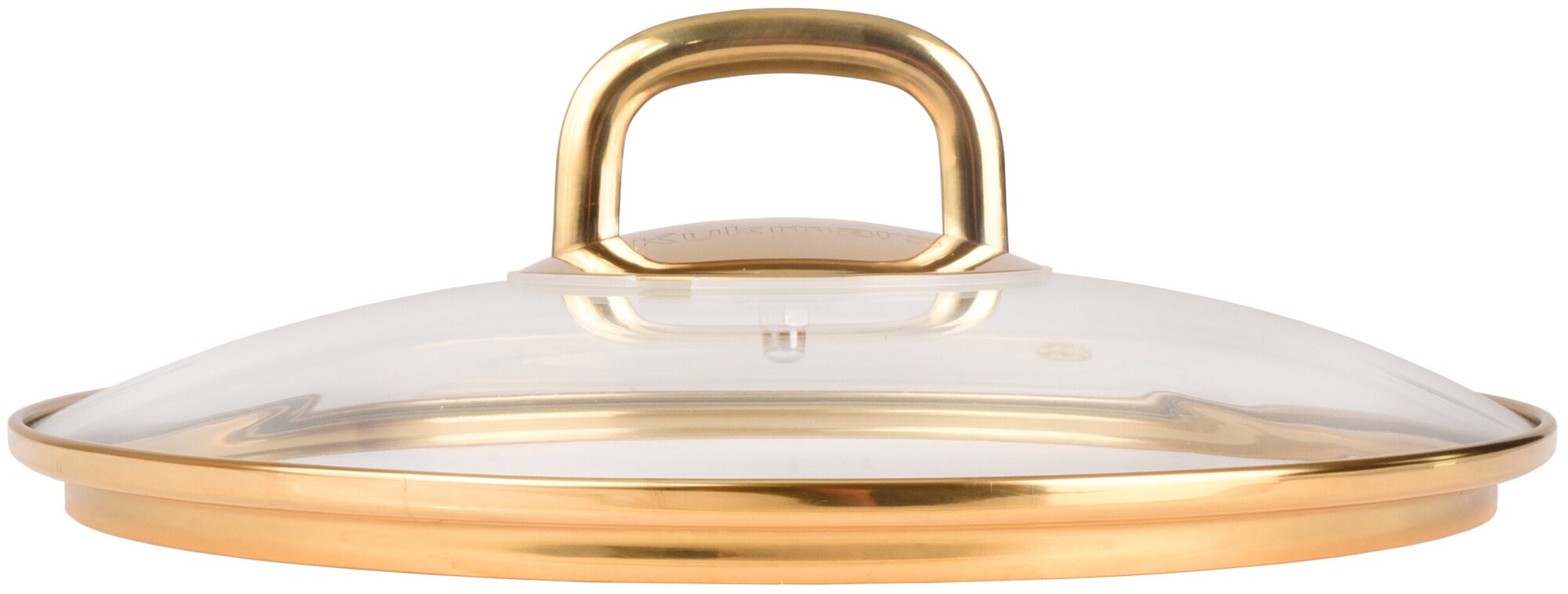 Крышка стеклянная Kukmara 260мм, с ободом и пароотводом из нерж. стали под золото и ручкой-кнопкой