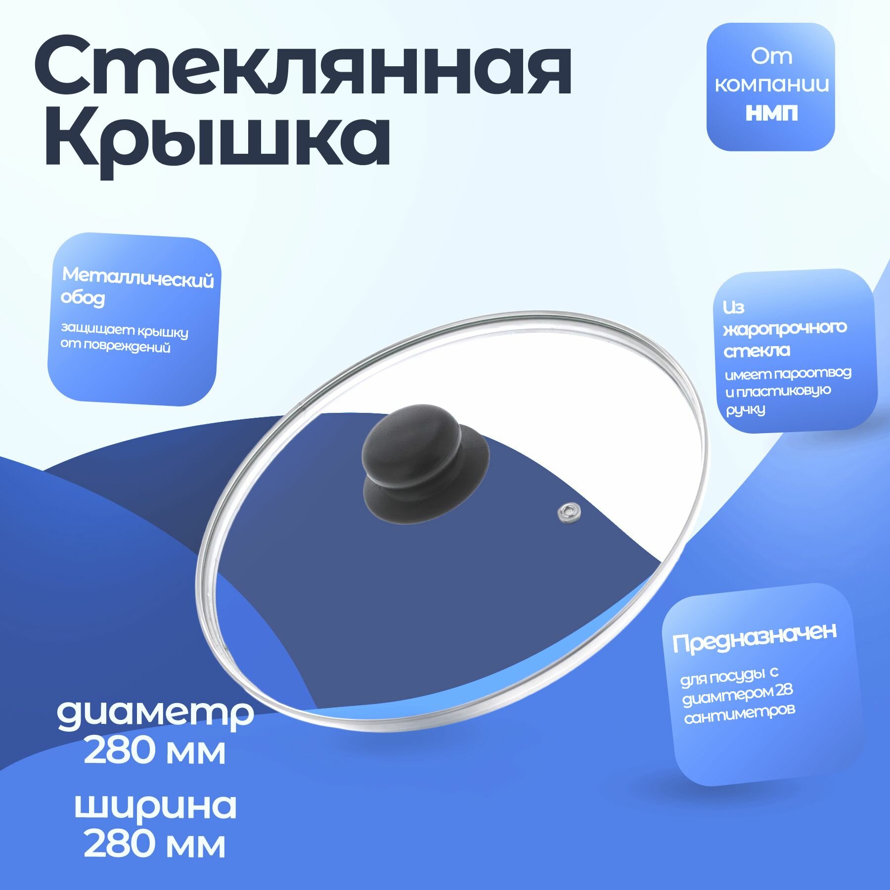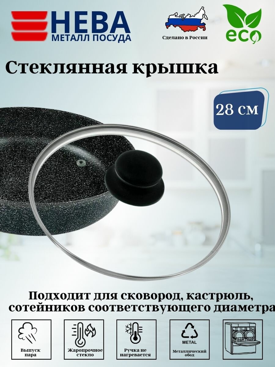 Крышка стекл. с метал. ободом 28 см 43028 Нева металл посуда информация: