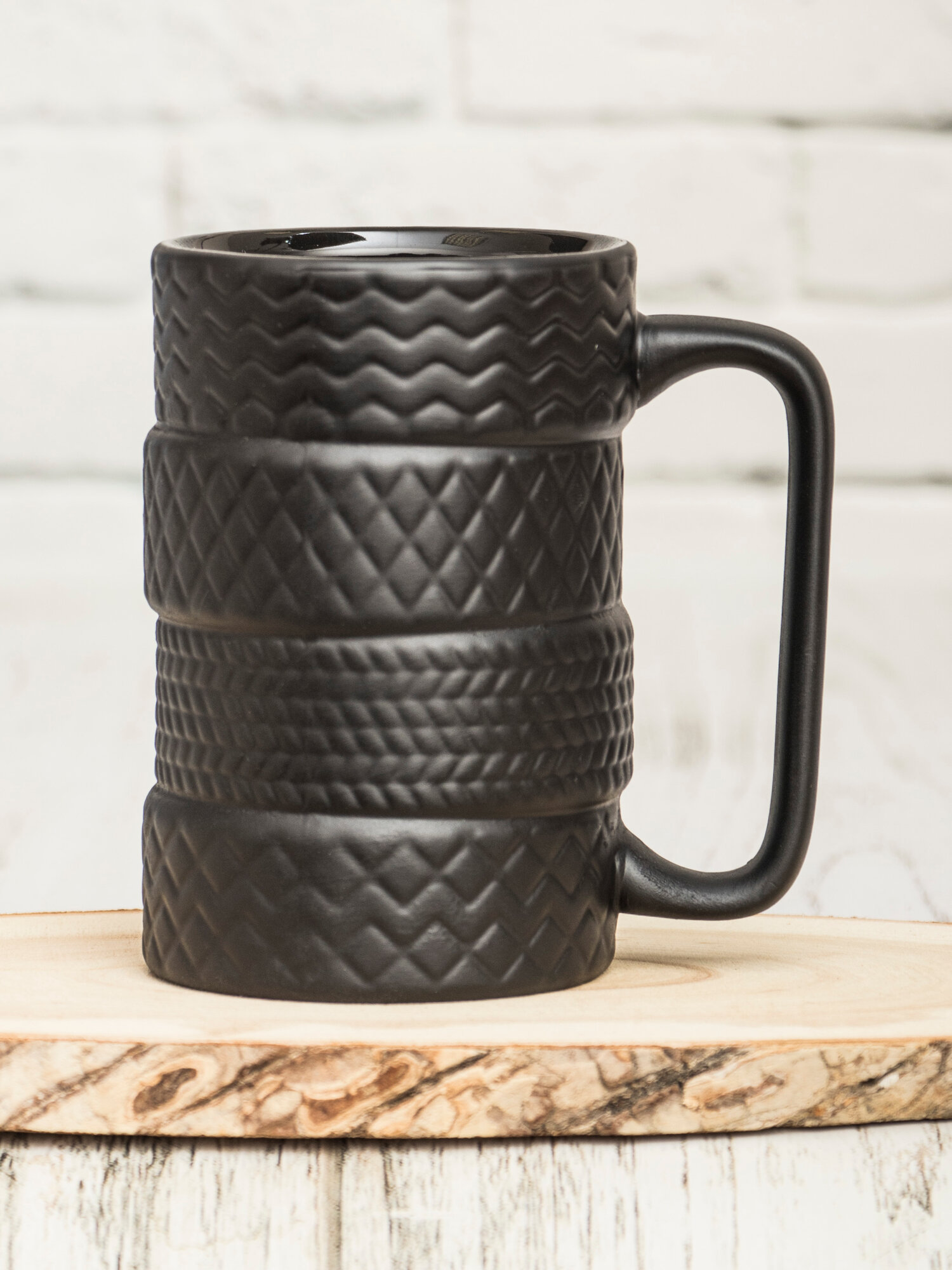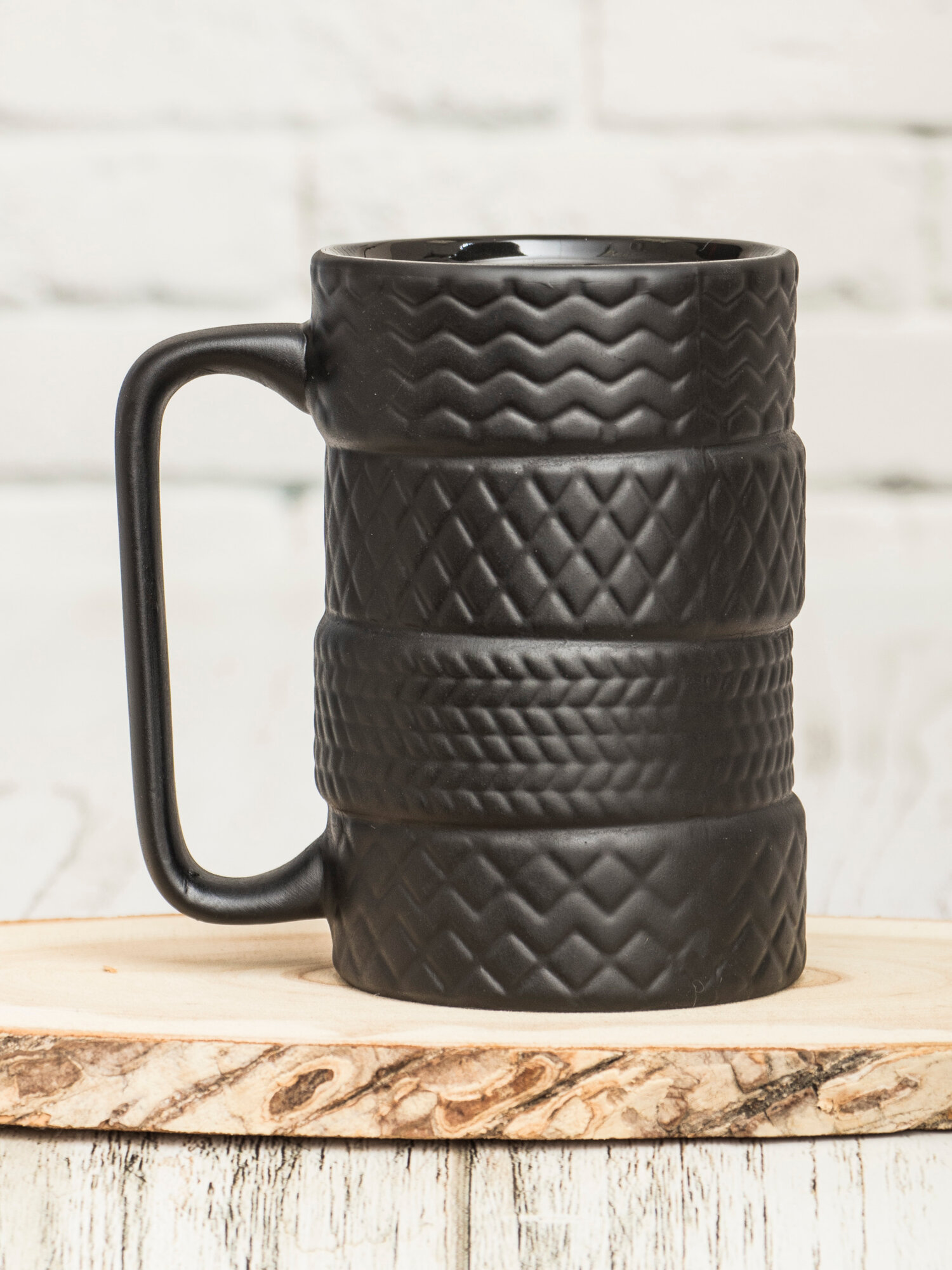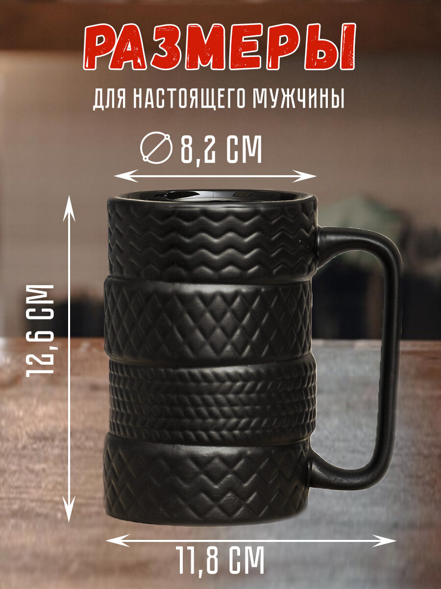 10 цен на Кружка Автолюбителя черная 450 мл, четыре Шины / Колеса, чашка мужская, большая, для чая и кофе, подарочная
