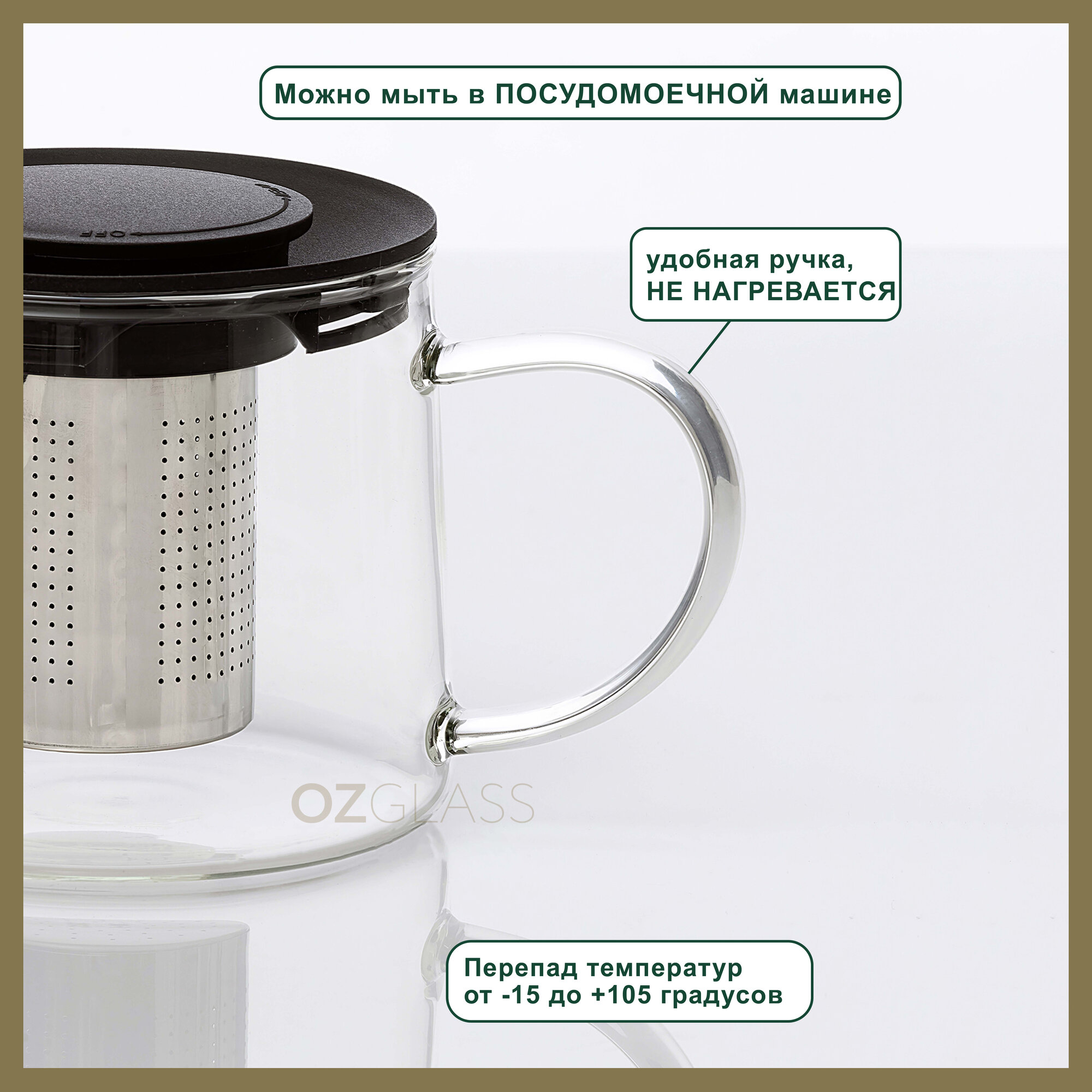OZGLASS / Чайник стеклянный "Брунн" с заварочной колбой для чая, 1500 мл информация: