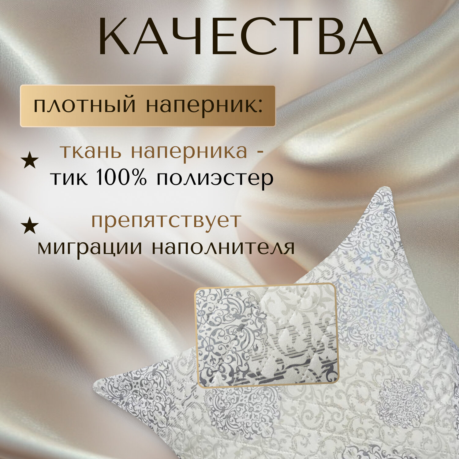 Подушка 50х70см Ночь Нежна, наполнитель лебяжий пух ромб M, чехол 100% хлопок сатин