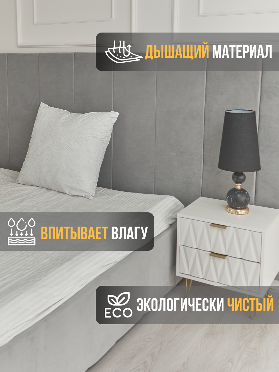 Подушка для сна 70x70 см, тик, гипоаллергенная, наполнитель искусственный лебяжий пух, универсальная информация: