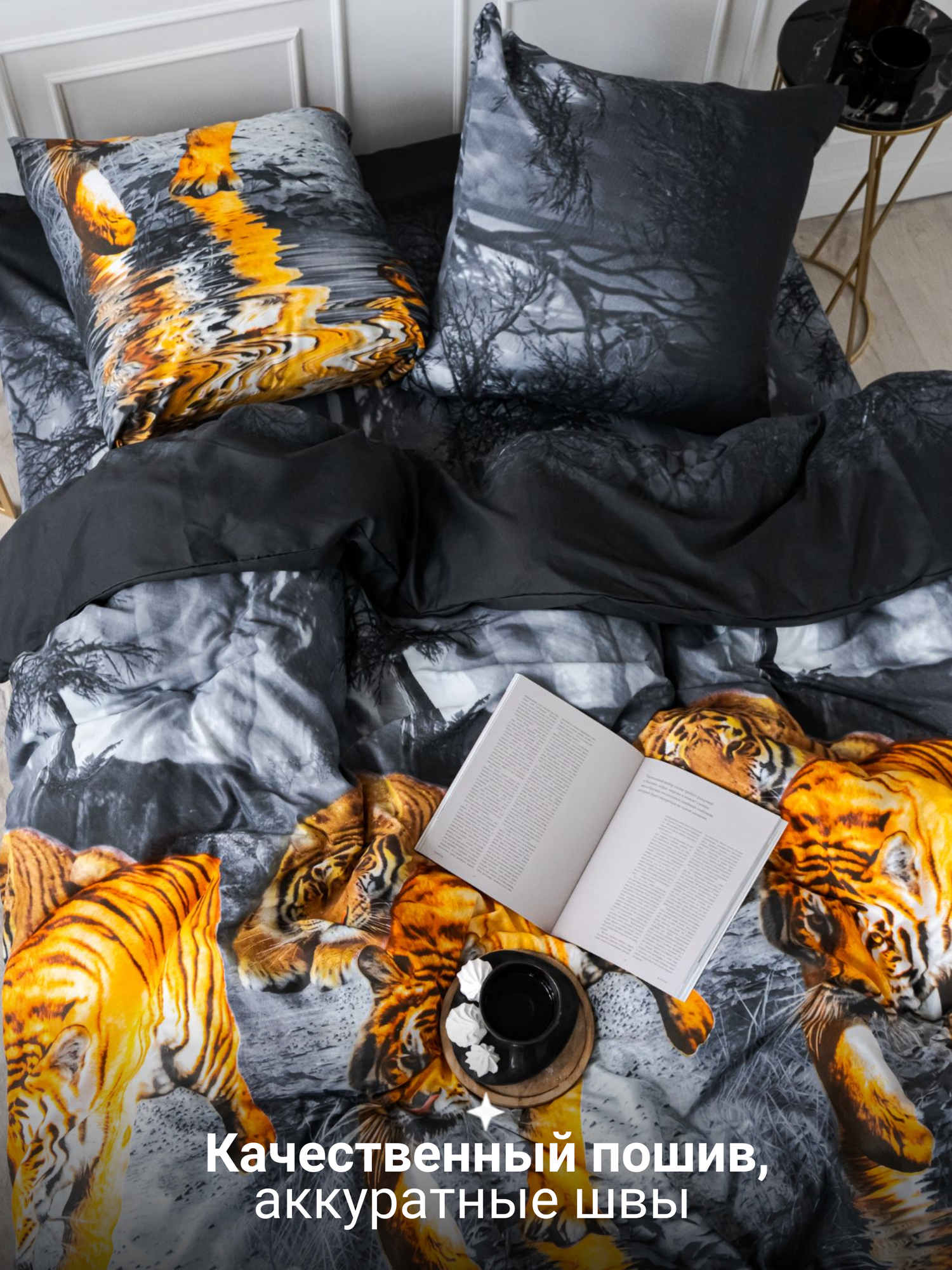 Отзывы на Постельное белье 2 спальное с европростыней Павлина полисатин Тигры рис 3837, черный
