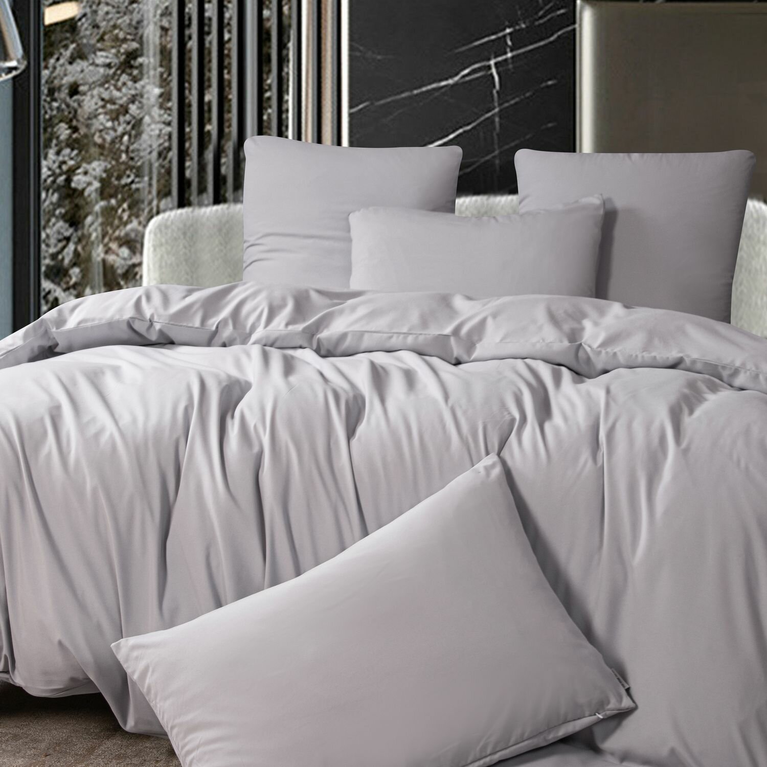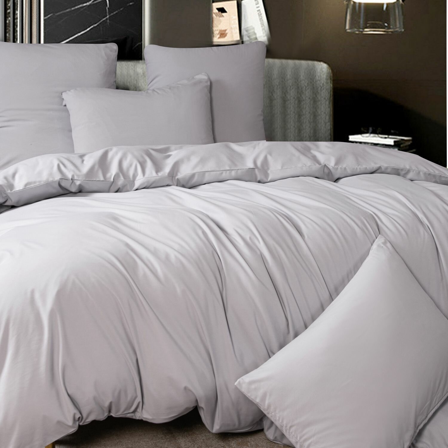 Комплект постельного белья ситрейд 1,5 спальный однотонный светло-серый, Сатин, наволочки 50x70 2 шт.