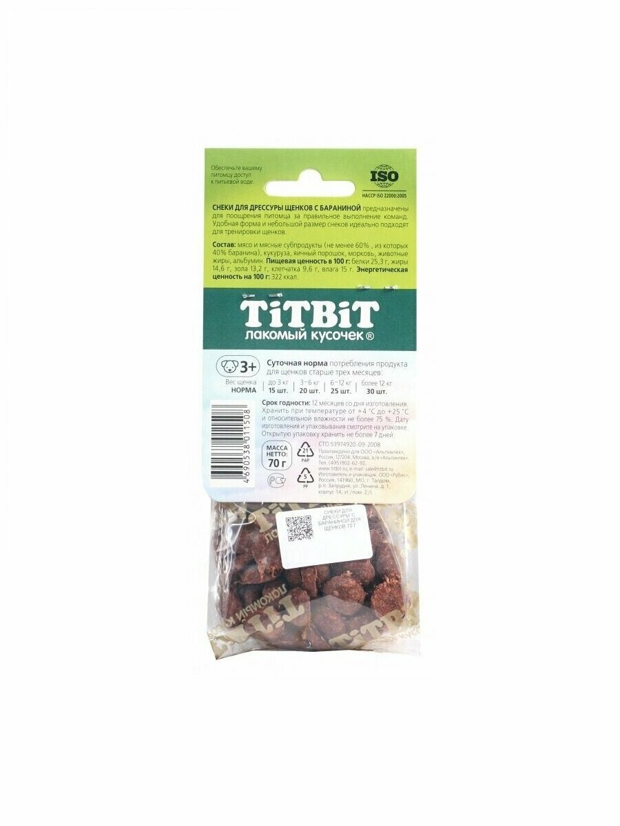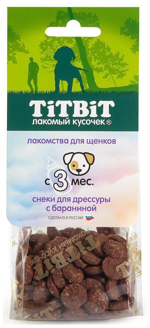 Лакомство TiTBiT Снеки для дрессуры с бараниной для щенков (70 г) информация: