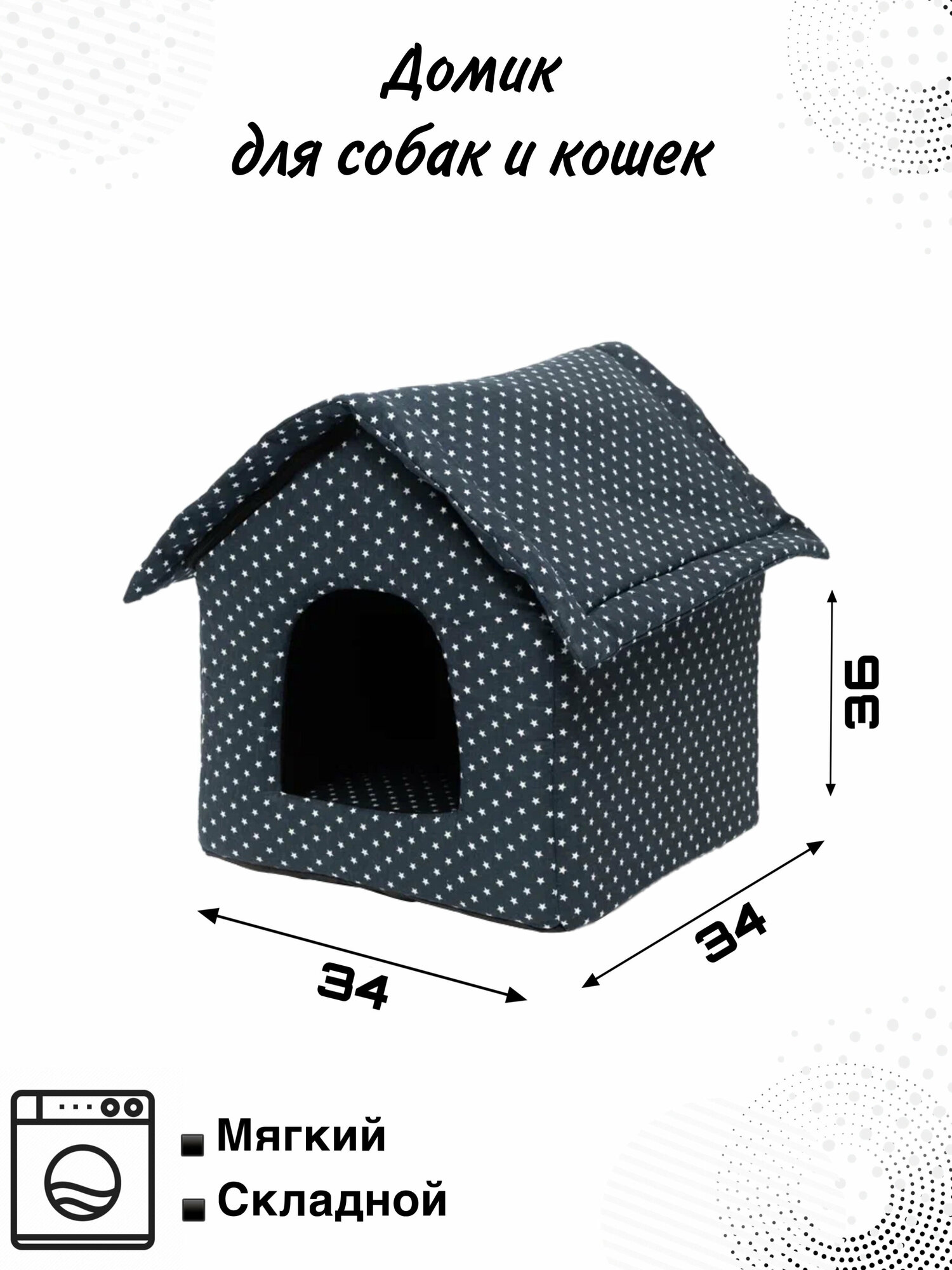Домик для собак мелких пород и кошек, 34 х 36, синий информация: