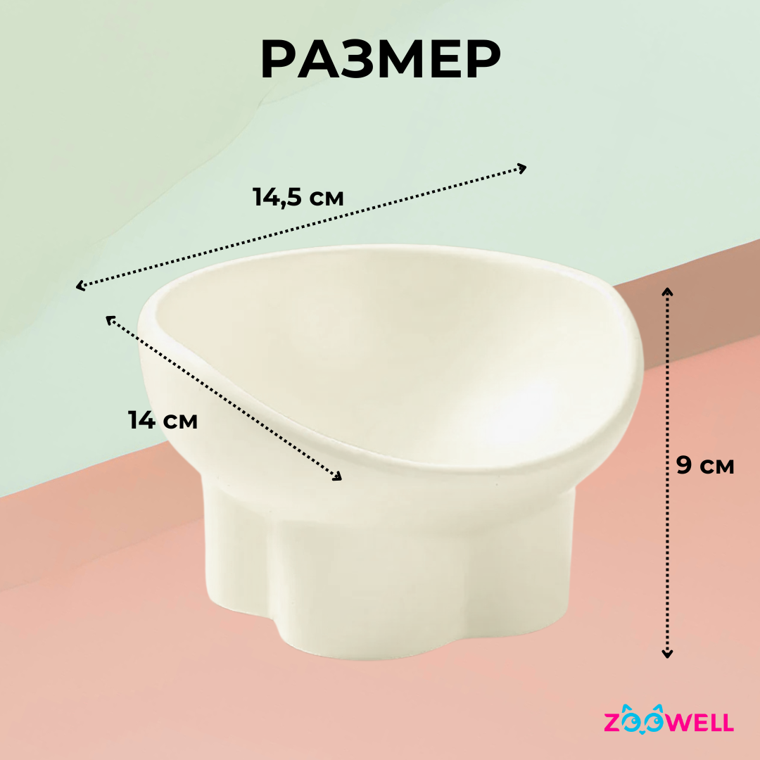 Миска для животных ZooWell Aura с наклоном, 240 мл, цвет бежевый, керамика 1 511 ₽