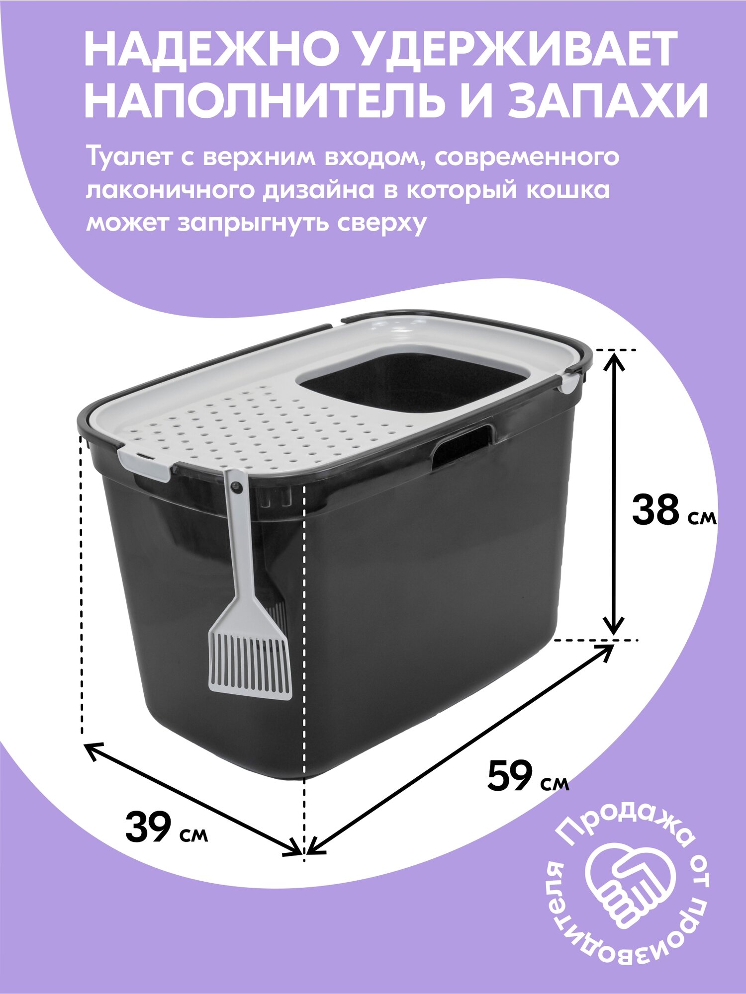 Туалет для кошек закрытый "PetTails" с верхним входом 59*39*38см (полипропилен) черный информация: