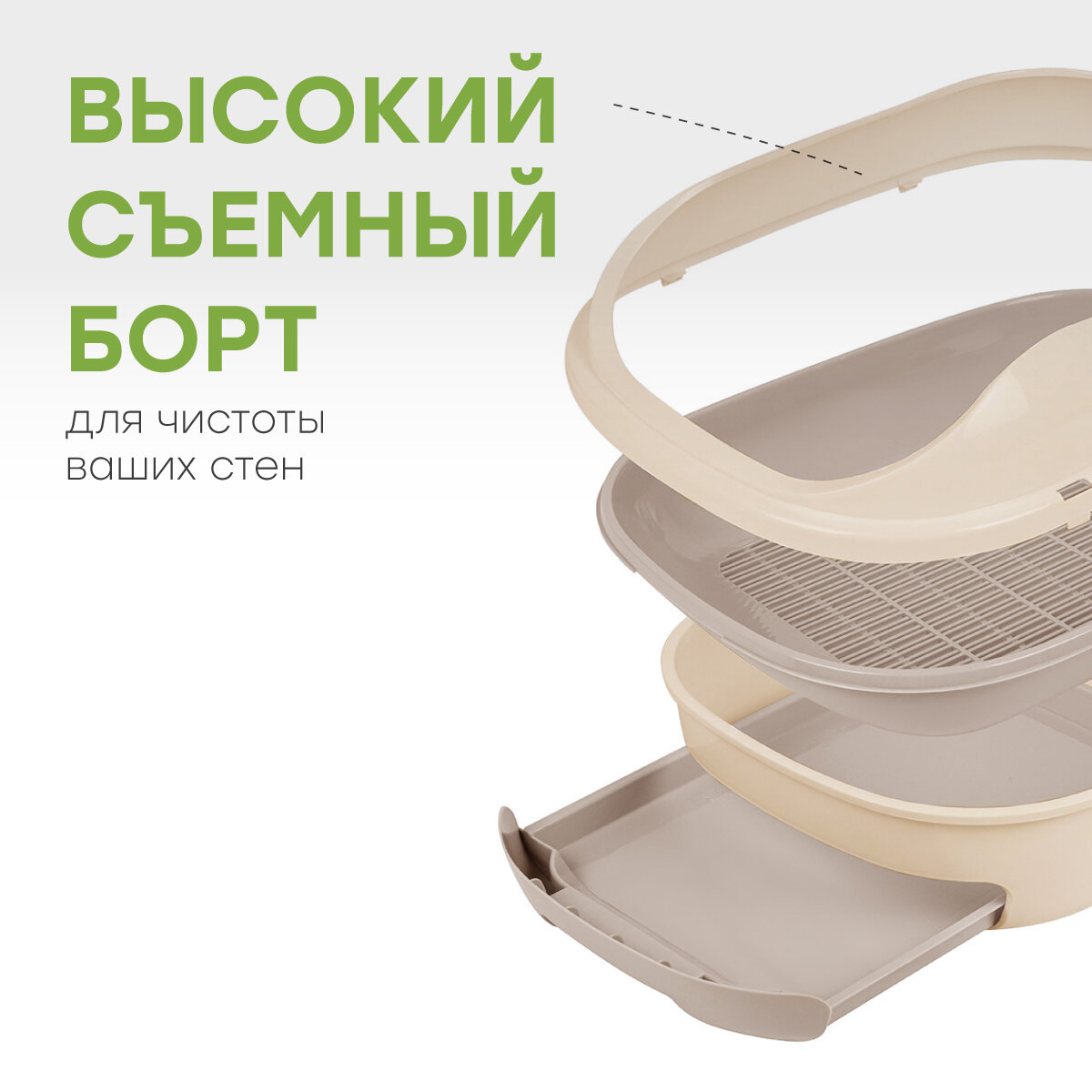 Отзывы на Системный лоток для кошек с высоким бортом, выдвижным поддоном и сеткой, большой, STEFAN, (L) 51х40х20, светло-коричневый, BP2913