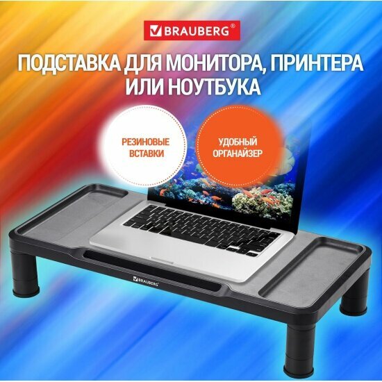 Подставка для монитора Brauberg ноутбука 555х265х114 мм, черная, 513792 информация: