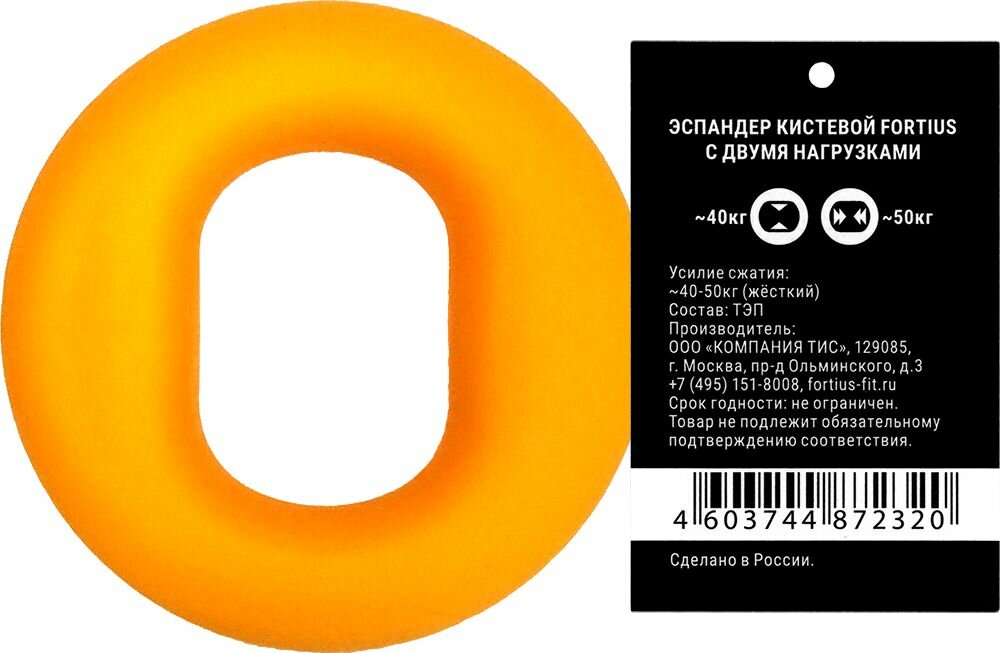 Эспандер кистевой FORTIUS для рук, 1шт, с двумя нагрузками 40-50 кг, жёлтый информация: