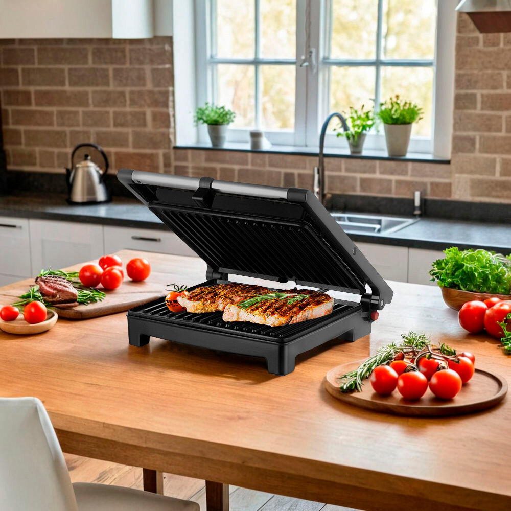 | Особенности | антипригарное покрытие / контактный гриль / поддон для сбора жира / режим барбекю 180° |