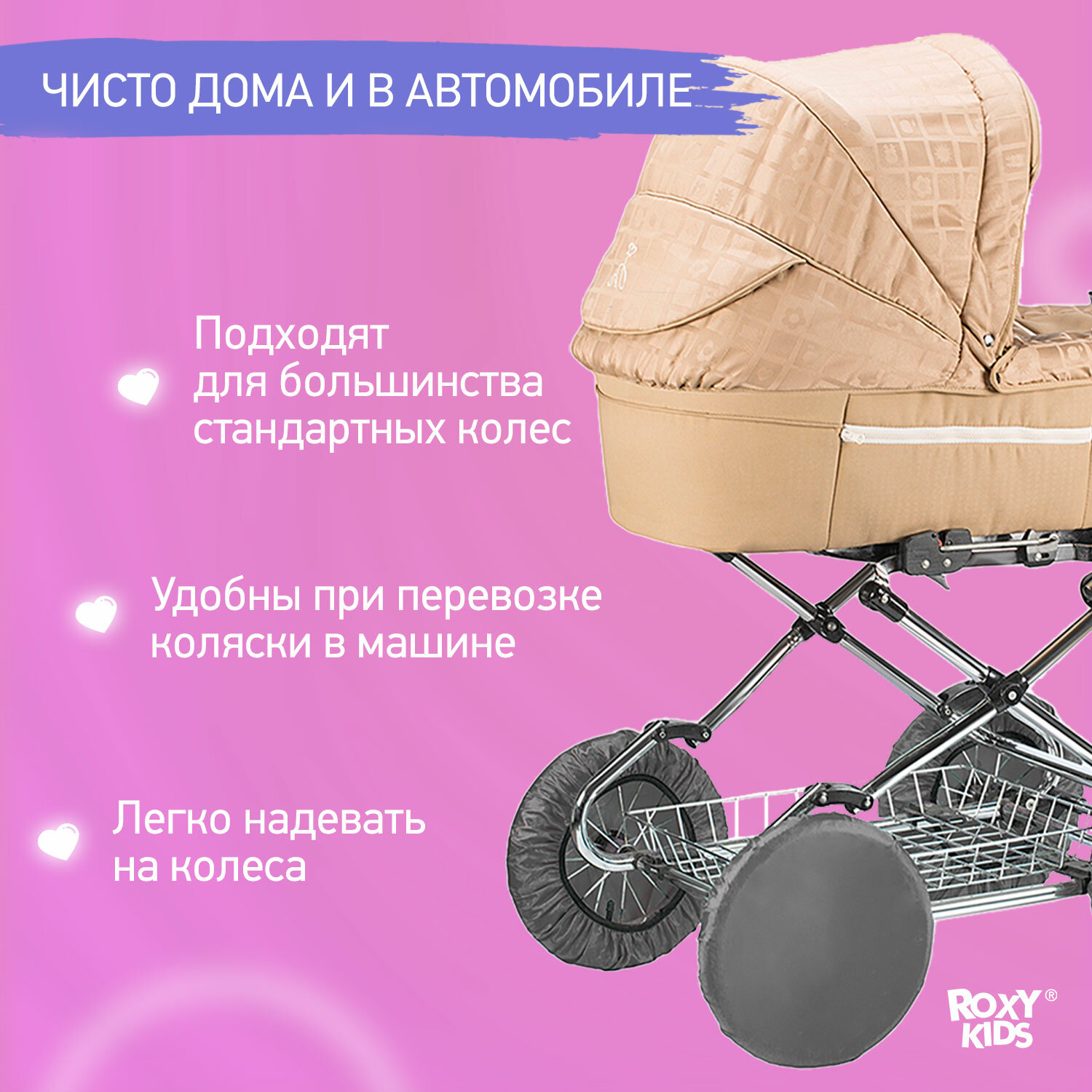 Чехлы на колеса для детской коляски на резинке ROXY-KIDS, 4 шт. цвет серый