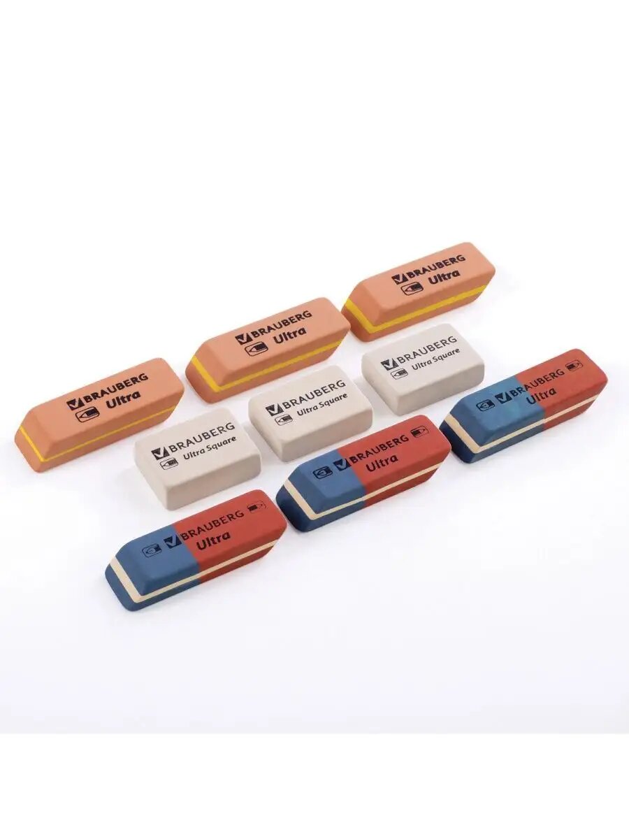 Отзывы на Ластик Brauberg "Ultra", ПВХ, прямоугольный, ластик-клячка, белый/синий, 9 штук