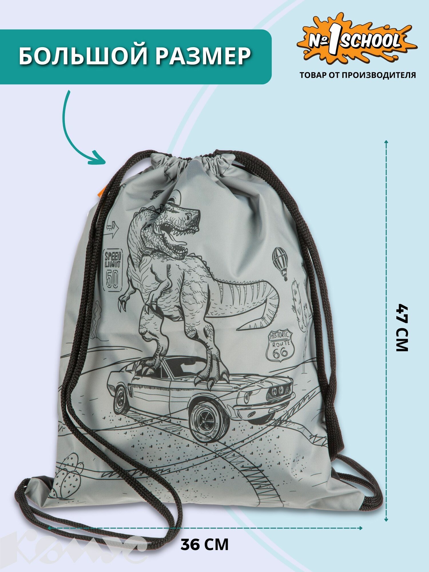 Мешок для обуви Комус Класс Динозавр, 360x470 мм, 1 отделение информация: